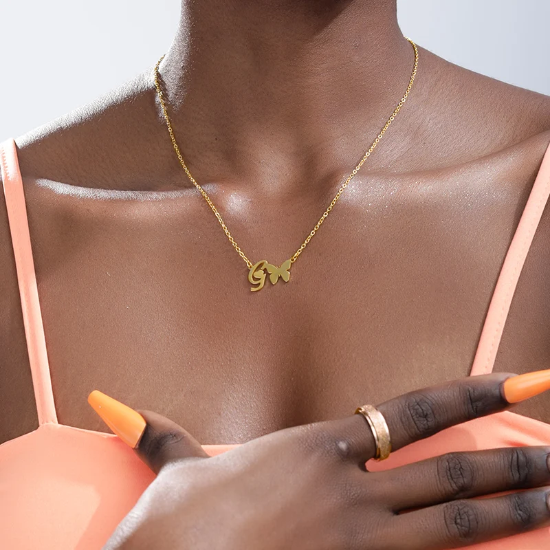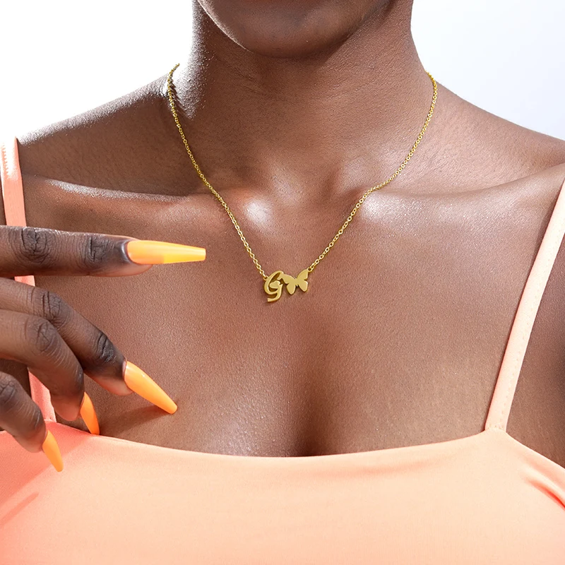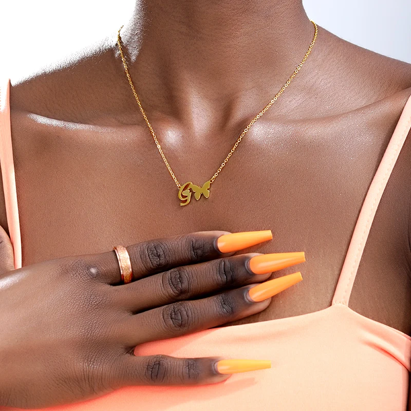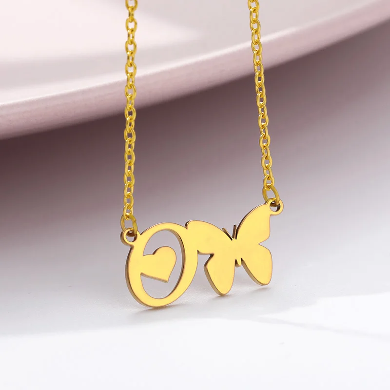 Ожерелье с бабочкой и инициалами для женщин, модное Очаровательное ...