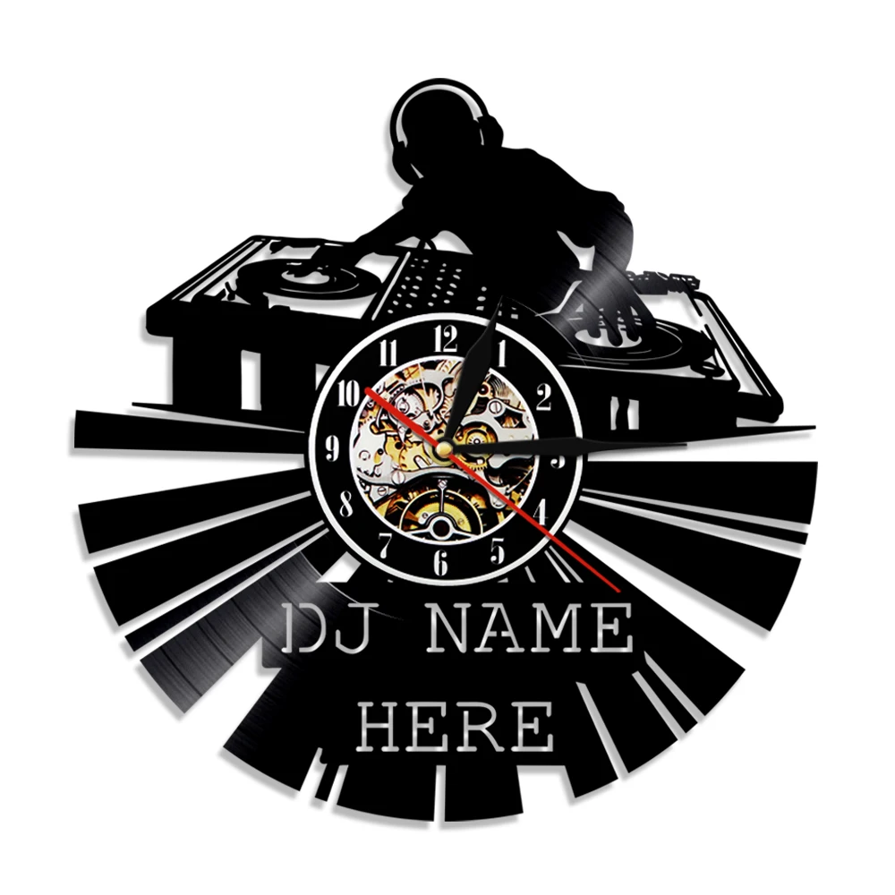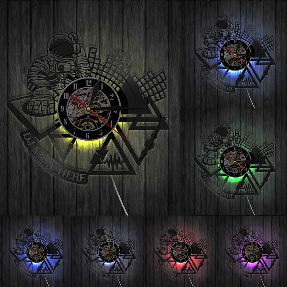 Наушники DJ Виниловая пластинка светодиодный настенные часы современный дизайн 12 дюймов диско пользовательское имя Geek Watch Rock N Roll Music Lover DJ Friend подарок