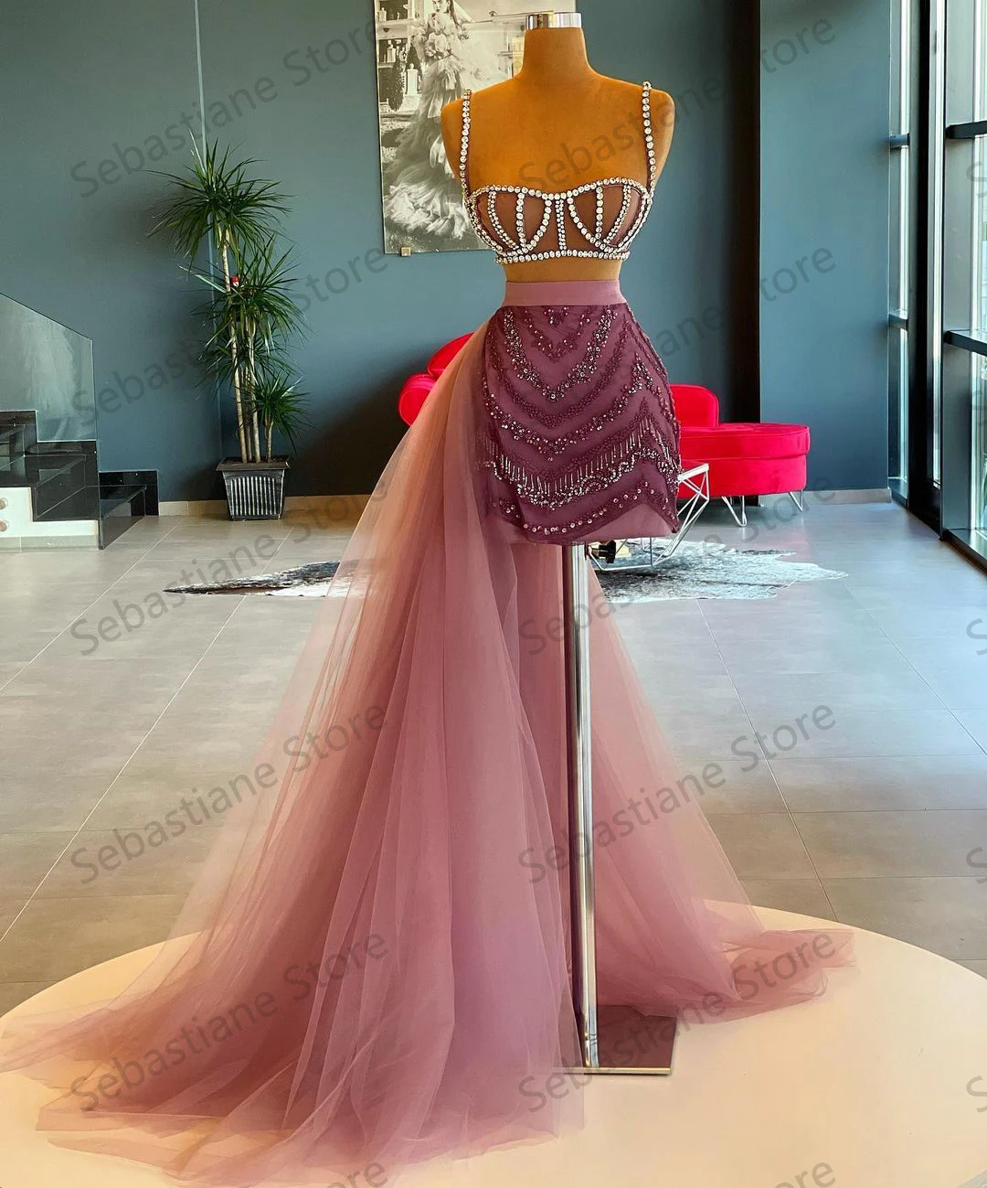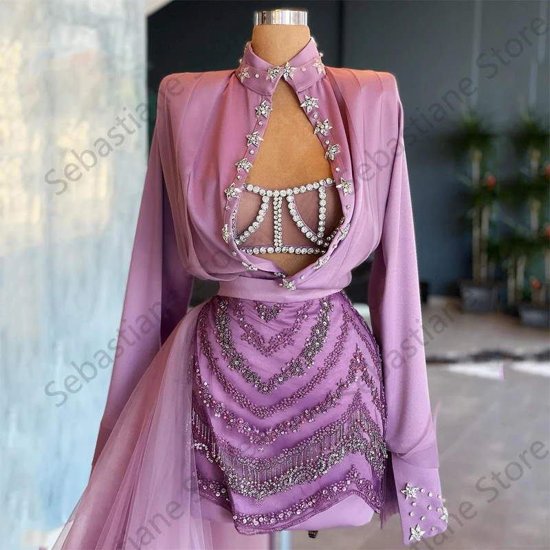 Роскошные модные платья из 3 частей для выпускного вечера с длинным рукавом, блестящее короткое платье из блестящего бисера, Тюлевое платье со шлейфом, женские Вечерние наряды на заказ
