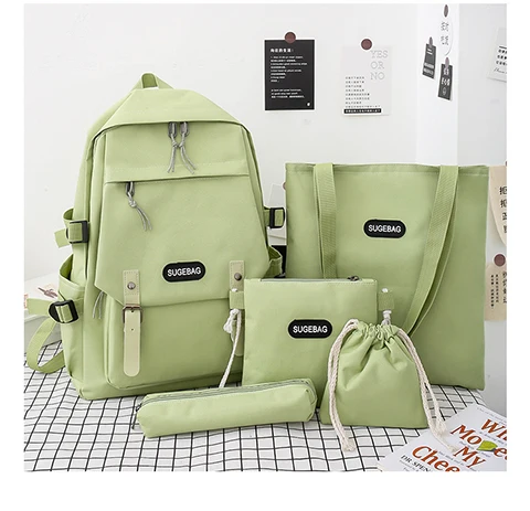 Рюкзак тканевый Женский, для девочек-подростков, 5 предметов