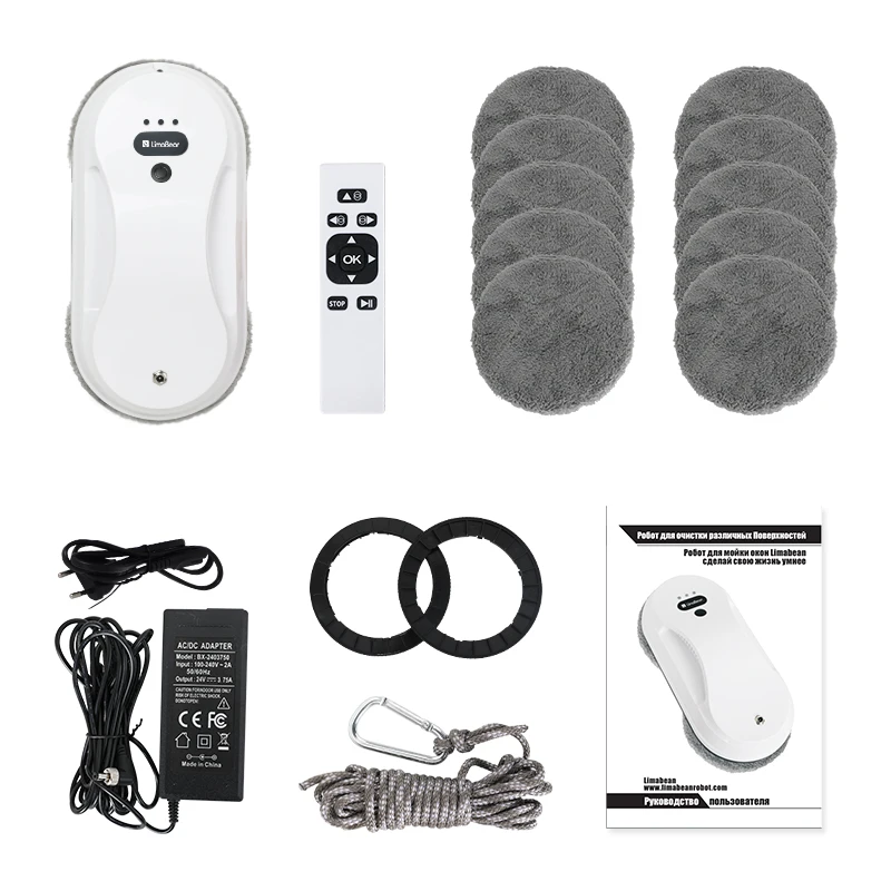 2.Этот робот для очистки окон может использоваться только после подключения к источнику питания, не работает от аккумулятора;