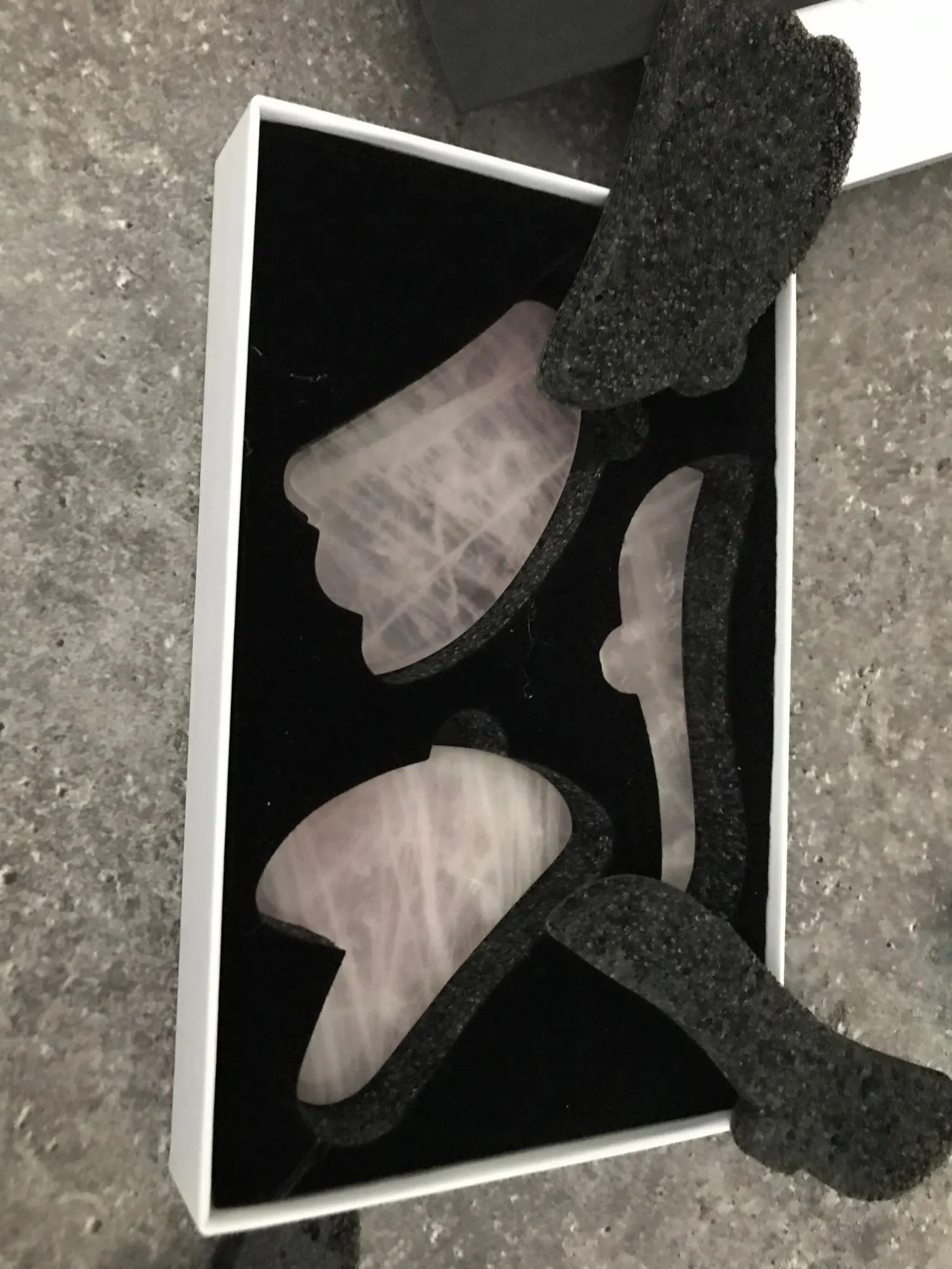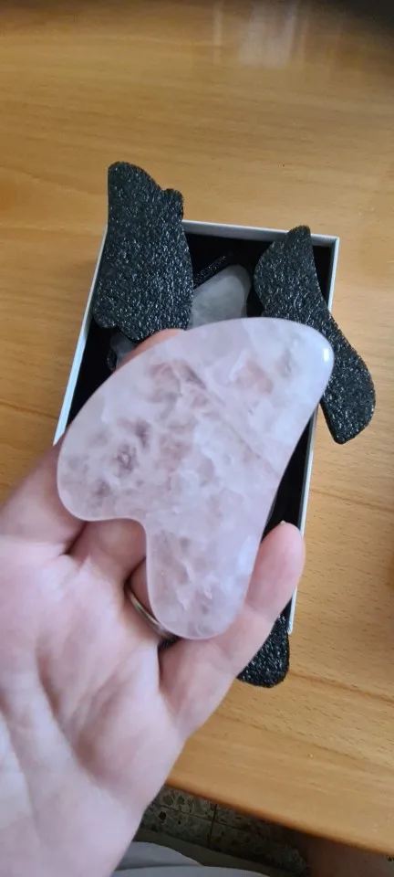 Продукт кажется очень высоким качеством-когда я открывал его, Gua Sha был холодным на ощупь, так же, как настоящий розовый кварц будет чувствовать себя! Я очень доволен заказом и Обязательно рекомендую его!