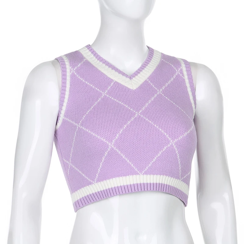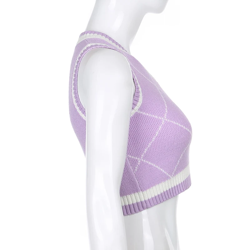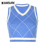 Жилет IAMSURE Женский, клетчатый, с узором ромбиками, без рукавов, с V-образным вырезом