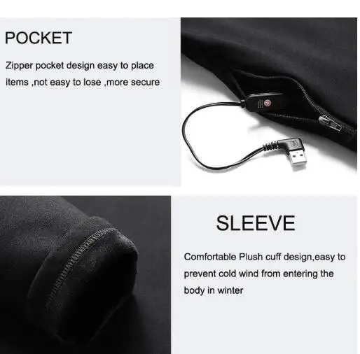 Как использовать:Зарядка-полностью зарядите внешний аккумулятор, перед использованием.Подключаемый Тип-подключает блок питания к разъему, расположенному в кармане.Нажмите и удерживайте кнопку ВКЛ/ВЫКЛ в течение трех секунд. Начальная температура составляет около 50 градусов (красный светодиодный), промежуточная температура около 40 градусов (синий светодиодный) и самая низкая около 30 градусов (зеленый светодиодный).