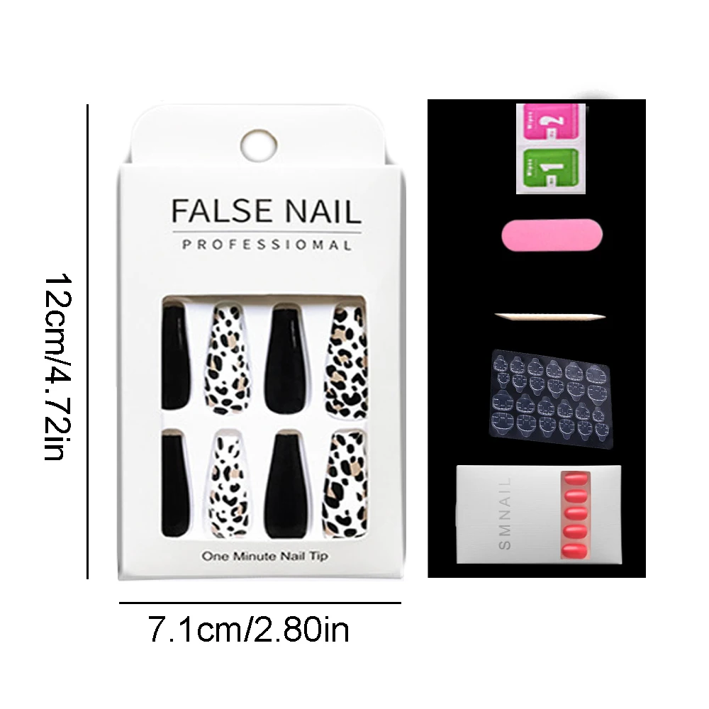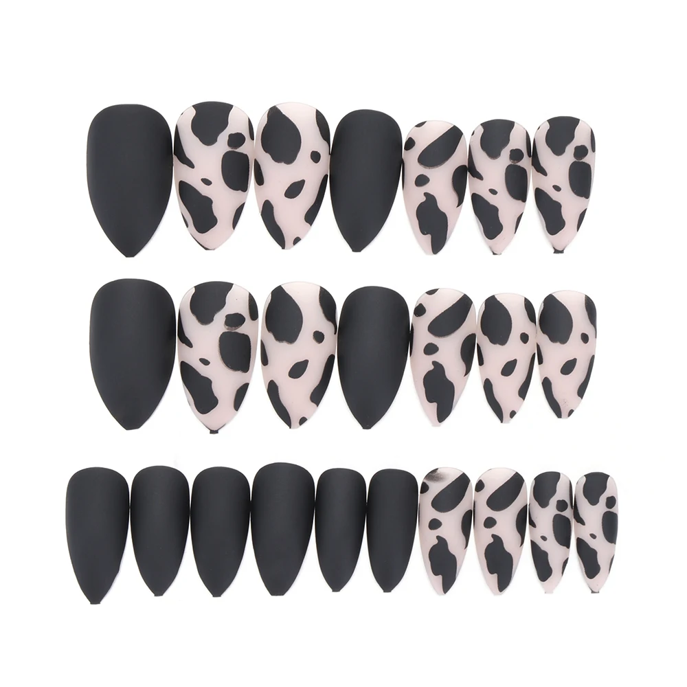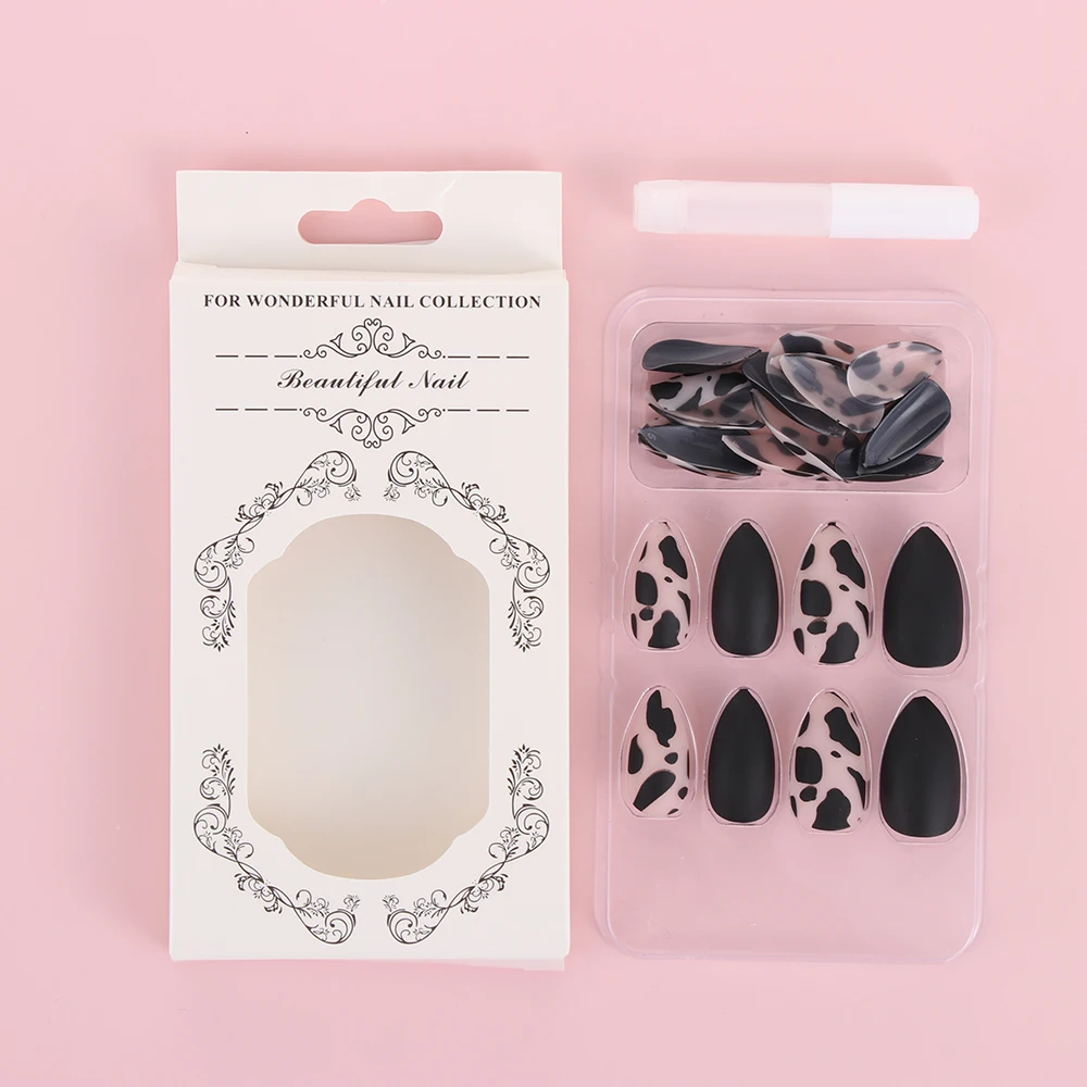24 шт.корт. Полное покрытие леопардовые накладные ногти на шпильке черные матовые накладные ногти с клеем для девушек женщин модный дизайн ногтей Декор