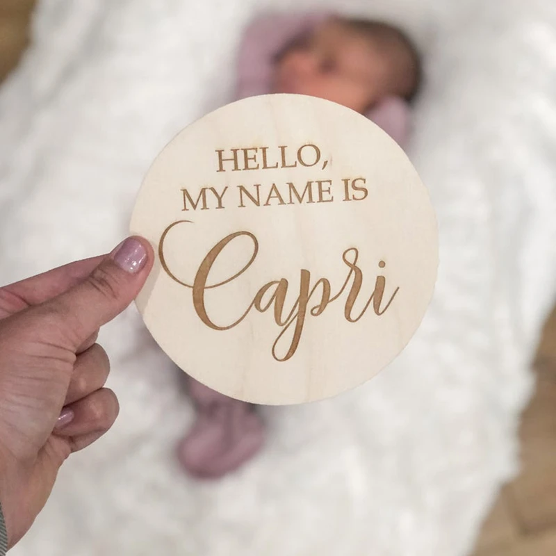 Персональный 4-дюймовый круглый знак имени ребенка объявление новорожденного Здравствуйте мое имя знак