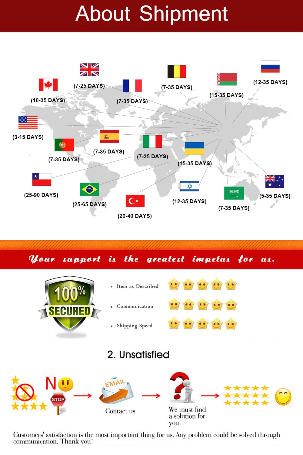 1. Преобразование: 1 см = 0,39 дюйма, 1 дюйм = 2,54 см. Пожалуйста, учитывайте погрешность измерения вручную в 1-3 см. 2. Из-за различий между различными мониторами изображение может не отражать фактический цвет изделия. Мы гарантируем, что рисунок такой же, как показано на фотографиях. 3. Из-за проблем с транспортировкой на большие расстояния продукт немного гнется, может быть, не такой плоский, как на картинке, но дозировка не влияет на качество и использование продукта. 4. Если у вас есть какие-либо вопросы до оформления заказа или после покупки, свяжитесь с нами.
