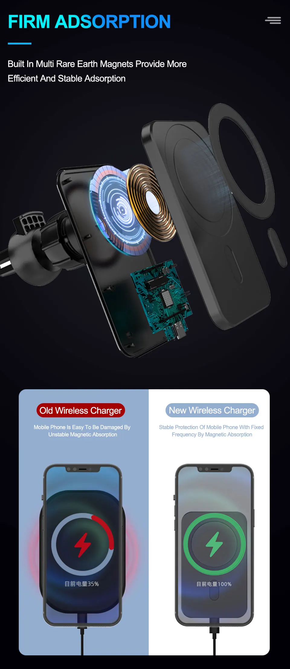 Features 3Magnetic Wireless Car Charger Phone Holder