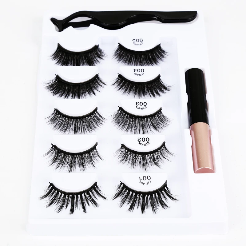 Набор из 10 шт. = 5 пар магнитных ресниц, подводка для глаз, бигуди для ресниц, 3D натуральные длинные магнитные Накладные ресницы с магнитной подводкой для глаз TSLM1
