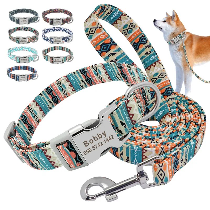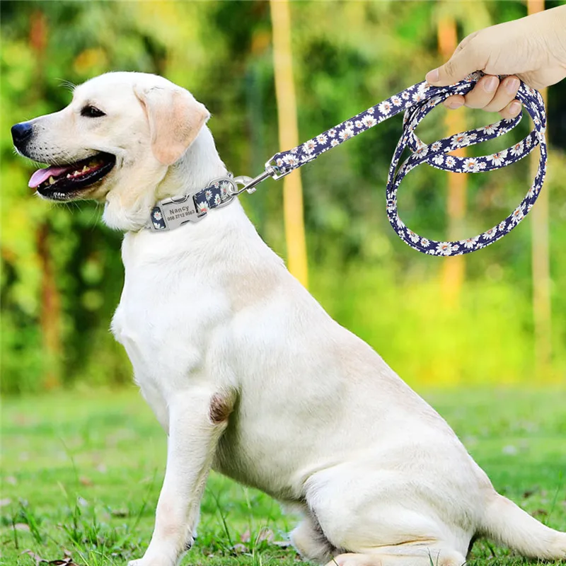 Ошейник и поводок для собак, Нейлоновый, с цветочным принтом