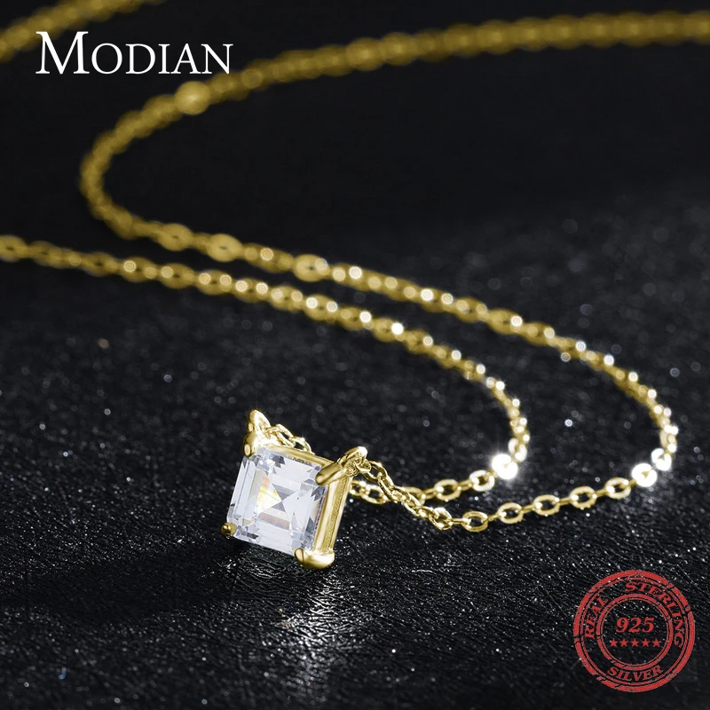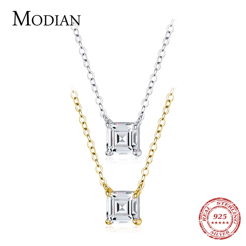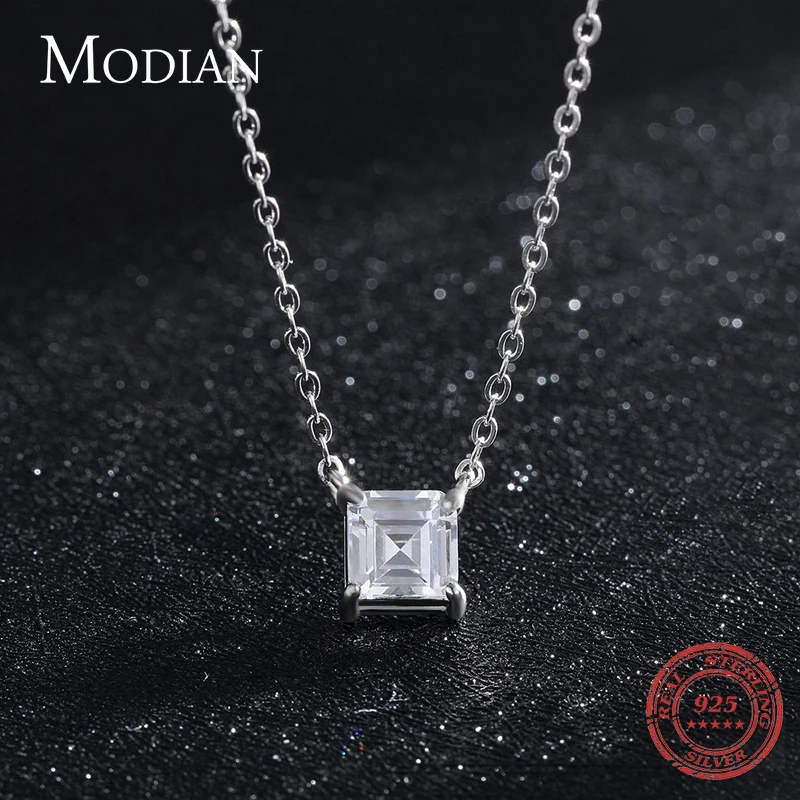 Женское классическое ожерелье Modian с квадратной изумрудной огранкой из настоящего серебра 925 пробы с кубическим цирконием, изящное свадебное Ювелирное Украшение 2020