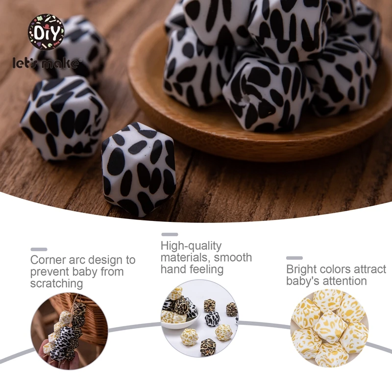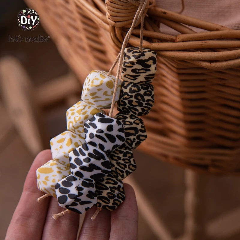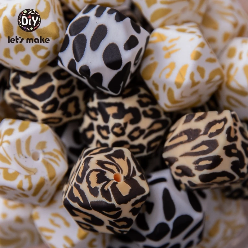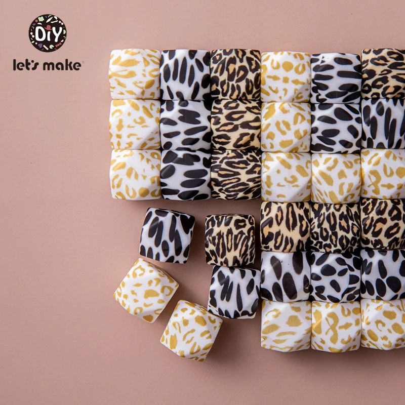 50 шт., силиконовые бусины с леопардовым принтом, 15 мм