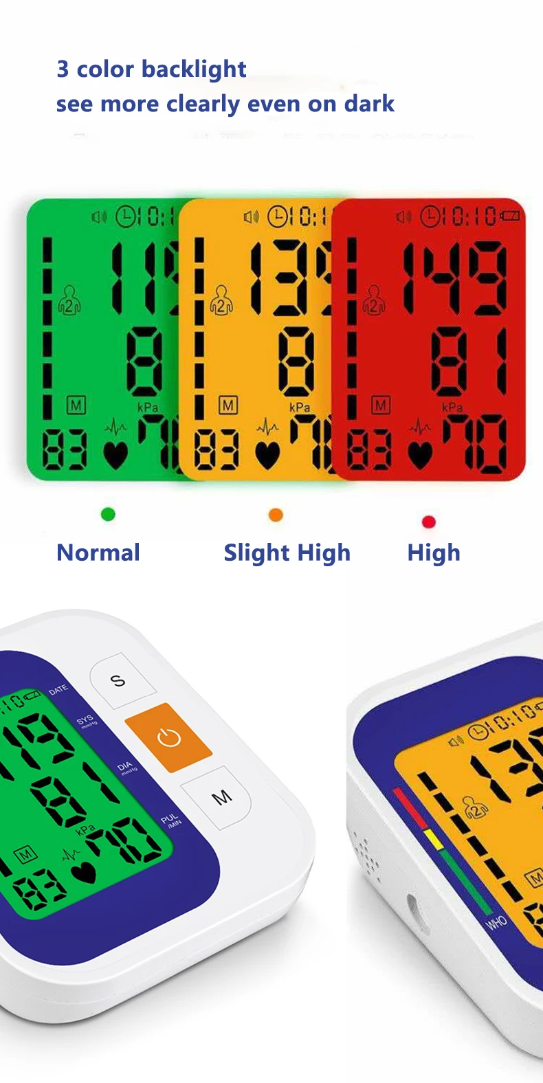 Это означает, что он всегда имеет подсветку при измерении. Таким образом, вы можете четко видеть экран даже в темноте. И более четко видеть в дневное время. Кроме того, если у вас высокое кровяное давление, экран показывает красный цвет. Если у вас небольшое кровяное давление, экран будет желтым. Если у вас нормальное кровяное давление, экран будет зеленым. По сравнению с моделью без подсветки, более легко увидеть результат, особенно для пожилых людей.