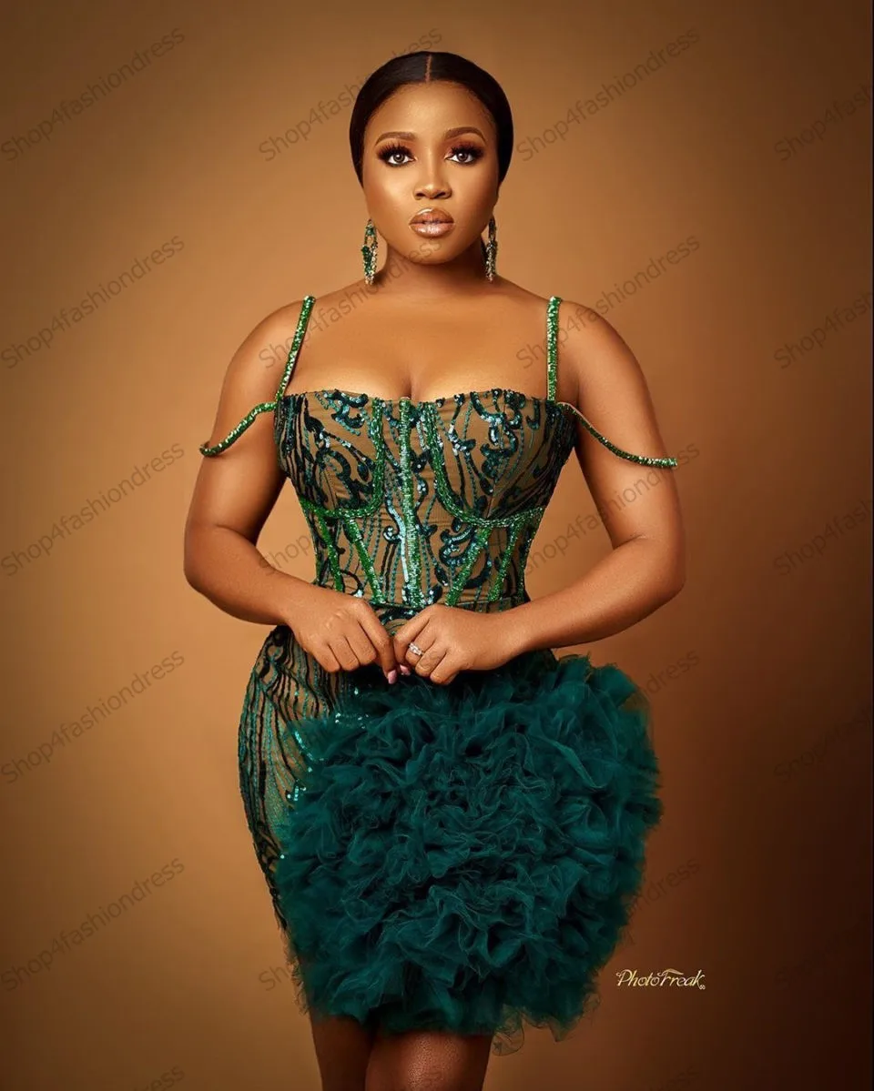 Черные вечерние платья Aso Ebi, короткие юбки с аппликацией из бисе...