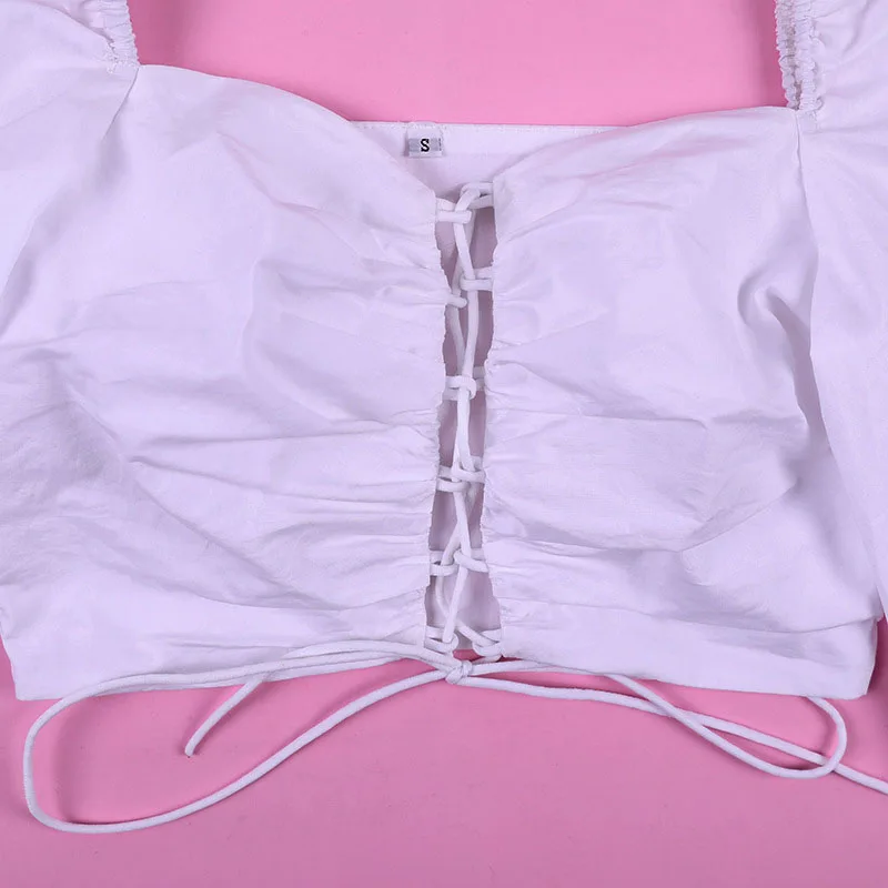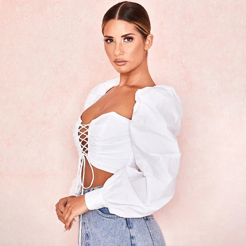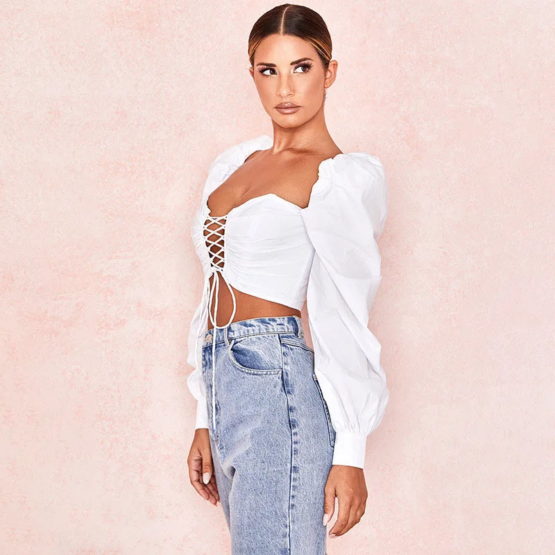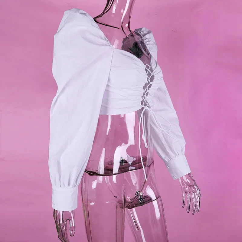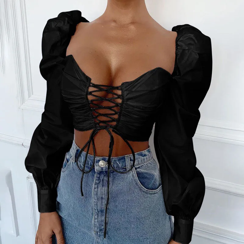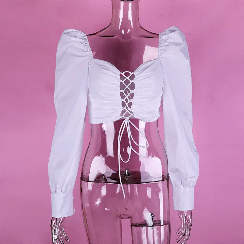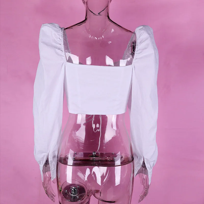 Женский укороченный топ с длинными рукавами-фонариками, белый или ч...