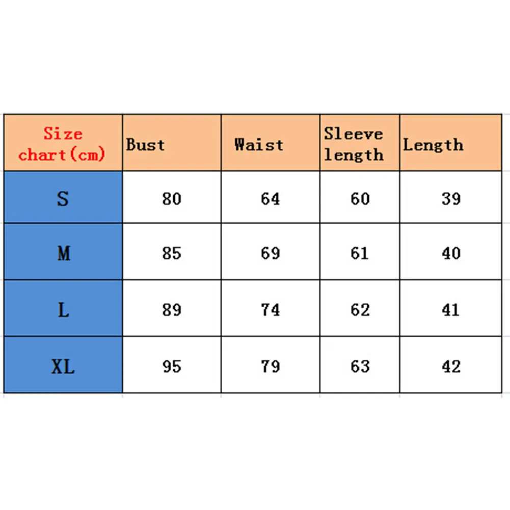Размер (см) S Бюст: 80 Талия: 64 Рукав: 60 Длина: 39М Бюст: 85 Талия: 69 Рукав: 61 Длина: 40L Бюст: 89 Талия: 74 Рукав: 62 Длина: 41XL Бюст: 95 Талия: 79 Рукав: 63 Длина: 42Размер (дюймы) S Бюст: 31,50 Талия: 25,20 Рукав: 23,62 Длина: 15,35М Бюст: 33,46 Талия: 27,17 Рукав: 24,02 Длина: 15,75L Бюст: 35,04 Талия: 29,13 Рукав: 24,41 Длина: 16,14XL Бюст: 37,40 Талия: 31,10 Рукав: 24,80 Длина: 16,54Характеристики:Материал: атласСезон: весна/осеньПол: женскийЦвет: белый/красный/черный/коричневыйУзор: однотонныйВоротник: Глубокий V-образный вырезДлина рукава: длинныйСтиль: Повседневный/Модный/сексуальныйПрименение: ежедневно/Вечеринки/отпуск/море/на открытом воздухе/Праздники/ночные клубы/домашняя одеждаПримечания:Возможны отклонения на 1-2 см из-за разных размеров, расположения и растяжки ткани.Таблица размеров предназначена только для справки; Возможно небольшое отличие от полученного вами товара.Цвет может быть светлее или темнее из-за разницы в мониторах ПК.Посылка