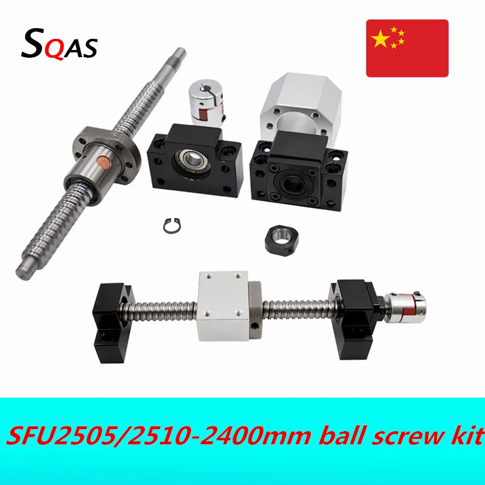 Шариковый винт 2400 мм SFU2510 SFU2505 + BK20 BF20 + Одиночная гайка-3 + Корпус гайки + муфта для ЧПУ, 1 комплект, быстрая доставка с завода