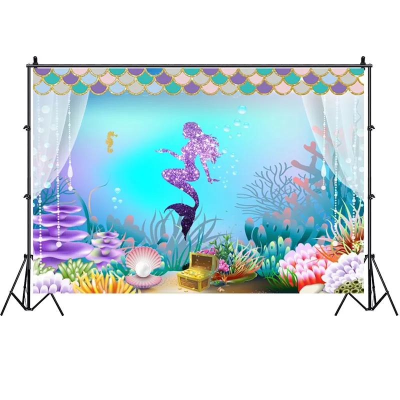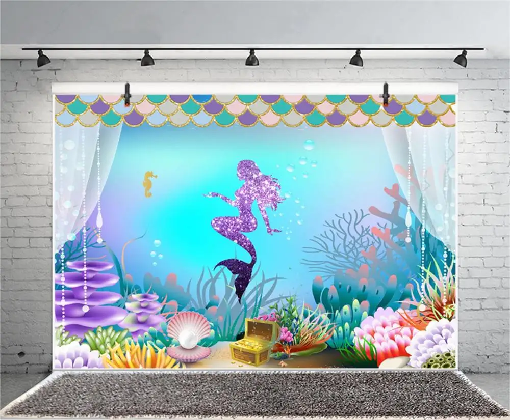 Фон для фотосъемки с изображением Русалочки Ариэль для дня рождения и вечеривечерние