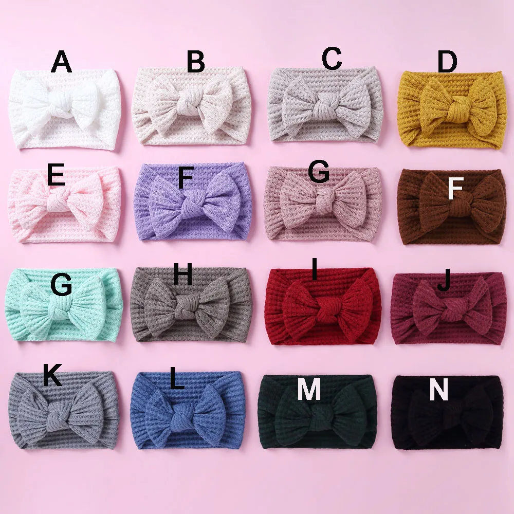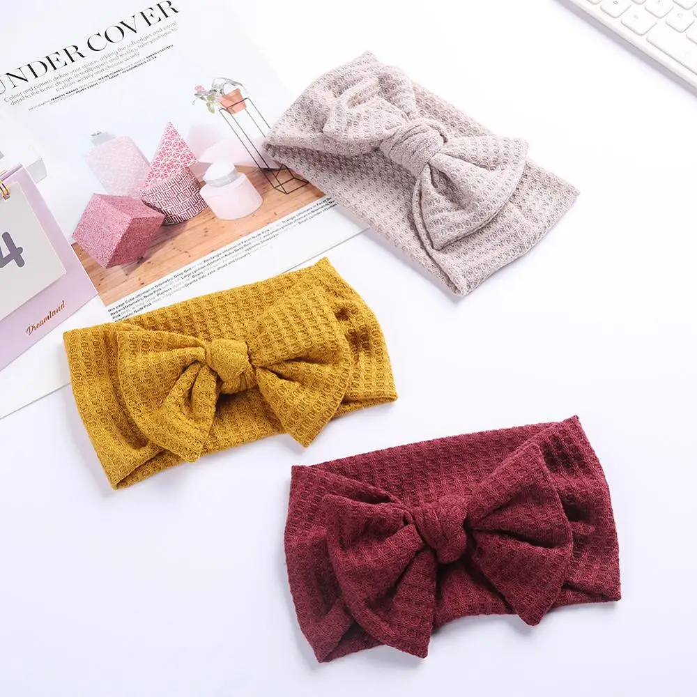Однотонный вафельный вязаный детский бантик для волос, эластичные п...