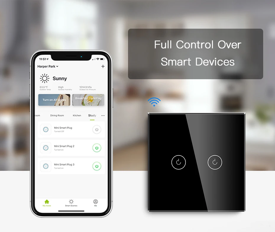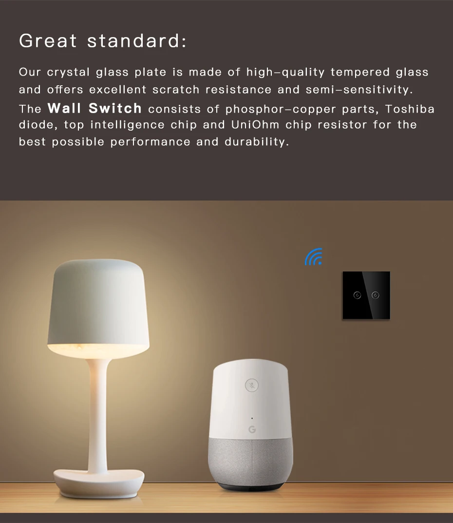 Сенсорный выключатель со стеклянной панелью работает с Tuya Smart
