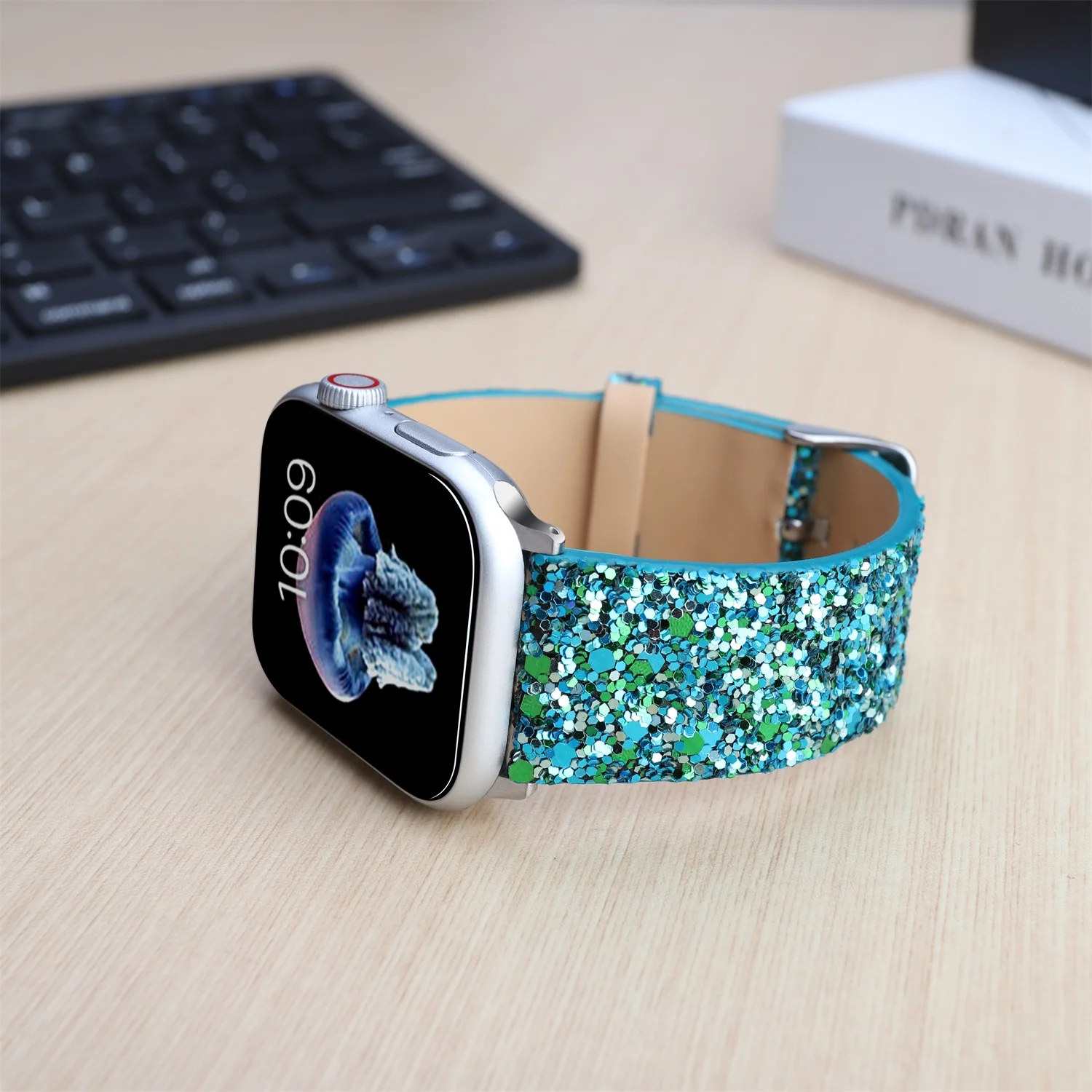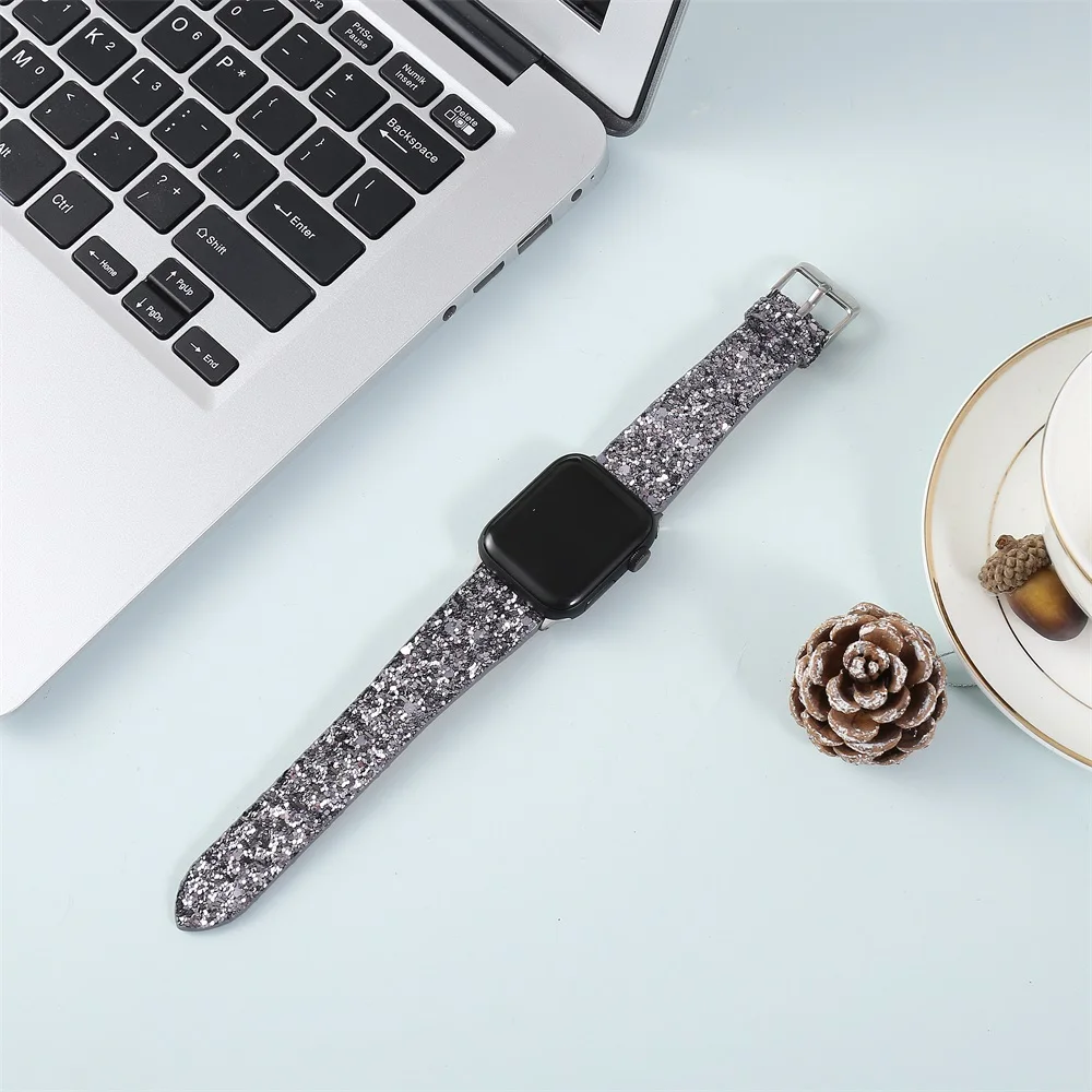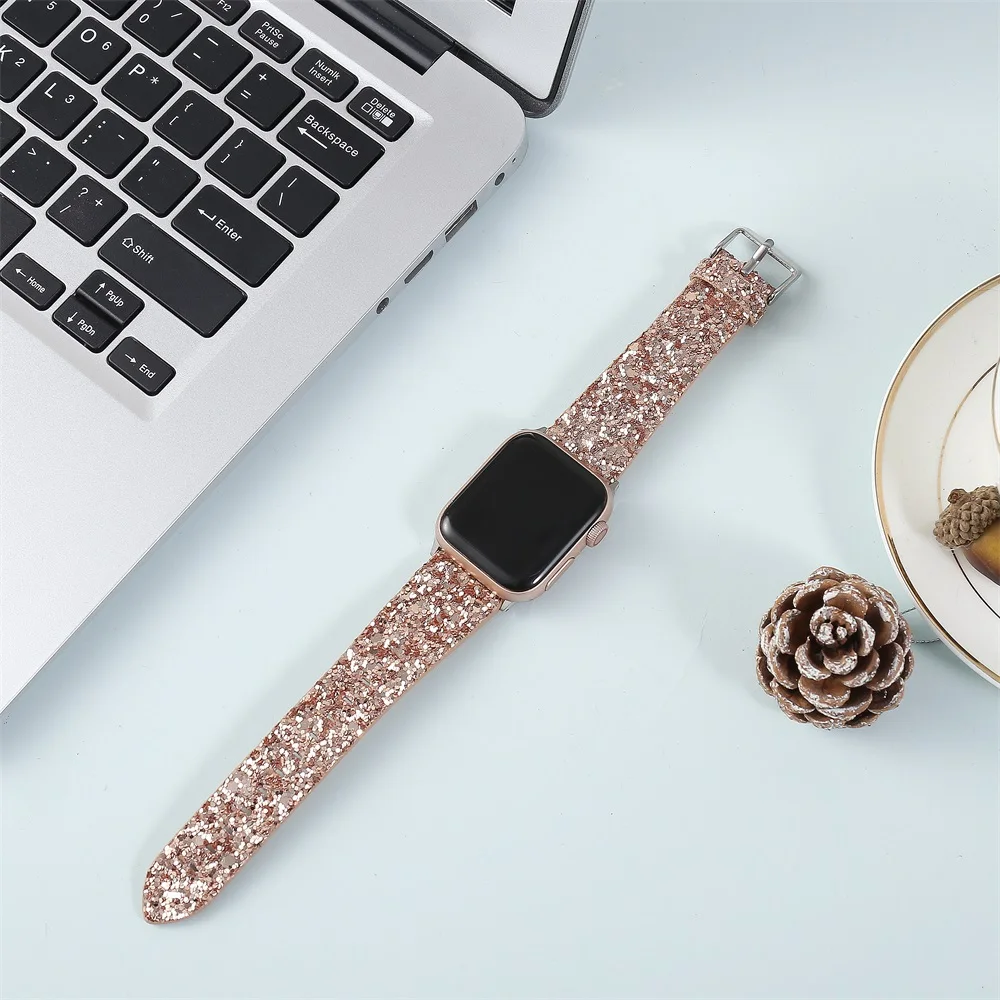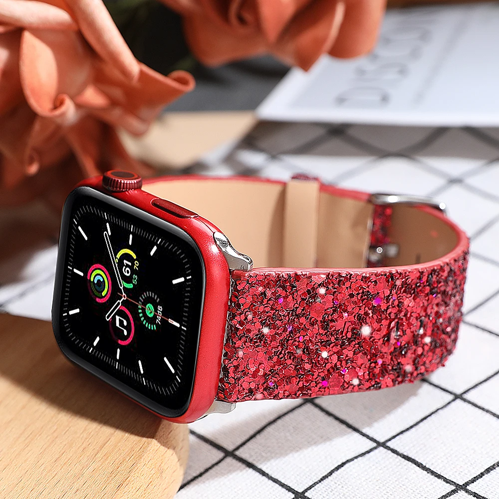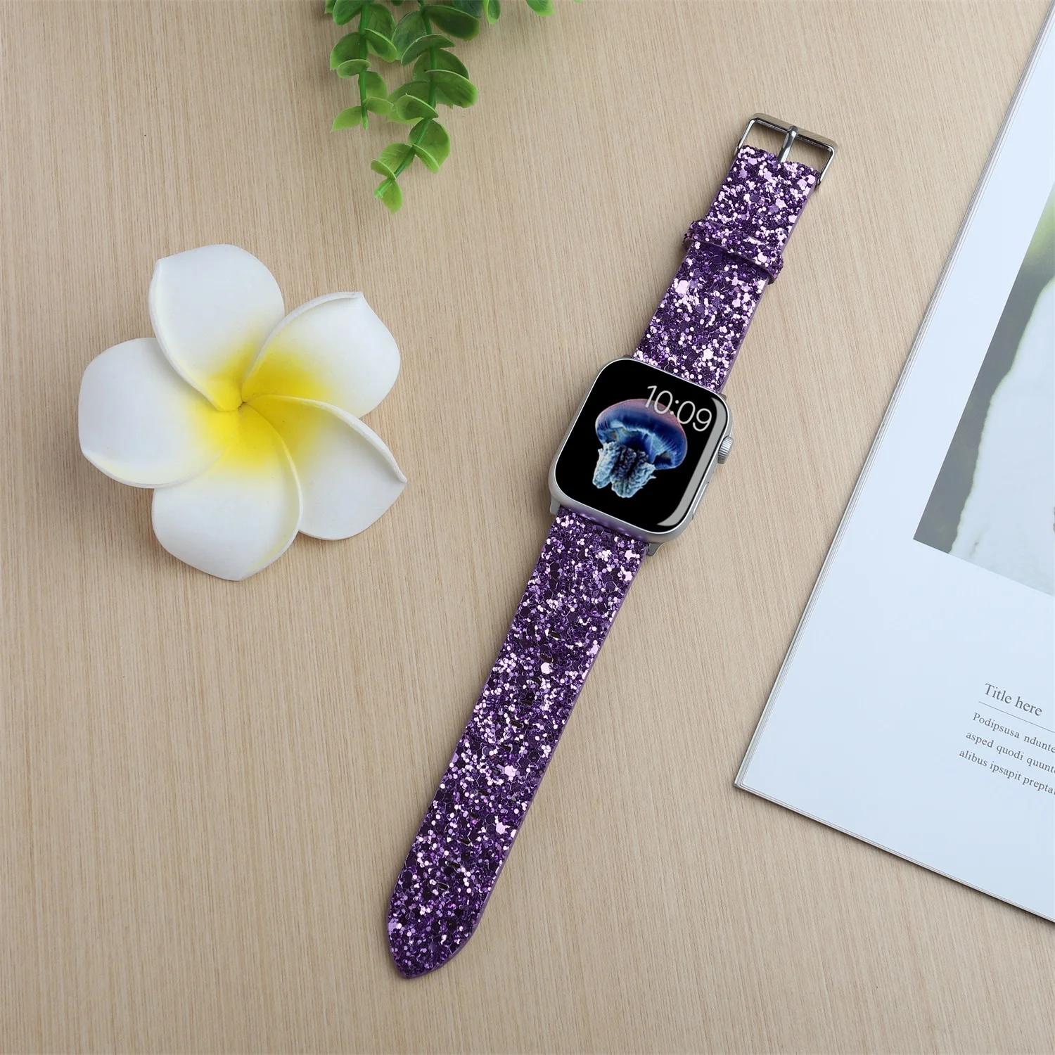 Ремешок кожаный для Apple Watch Band 38 мм 40 мм 42 мм 44 мм, блестящий женский браслет для iWatch Series 6 5 4 3 2 1 SE