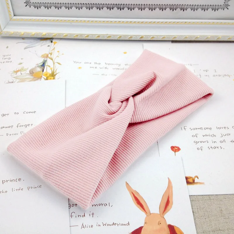 Повязка на голову женская, осенне-зимняя, широкая, вязаная, тюрбан, однотонная, Эластичный Бант