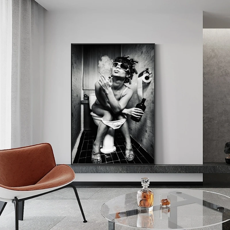 Сексуальная Девушка сидит в унитазе холст фотообои черный и белый холст фотография