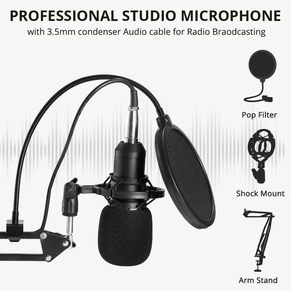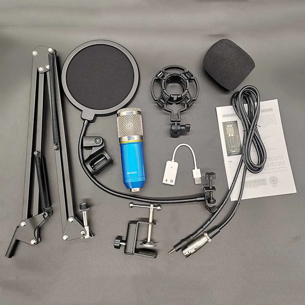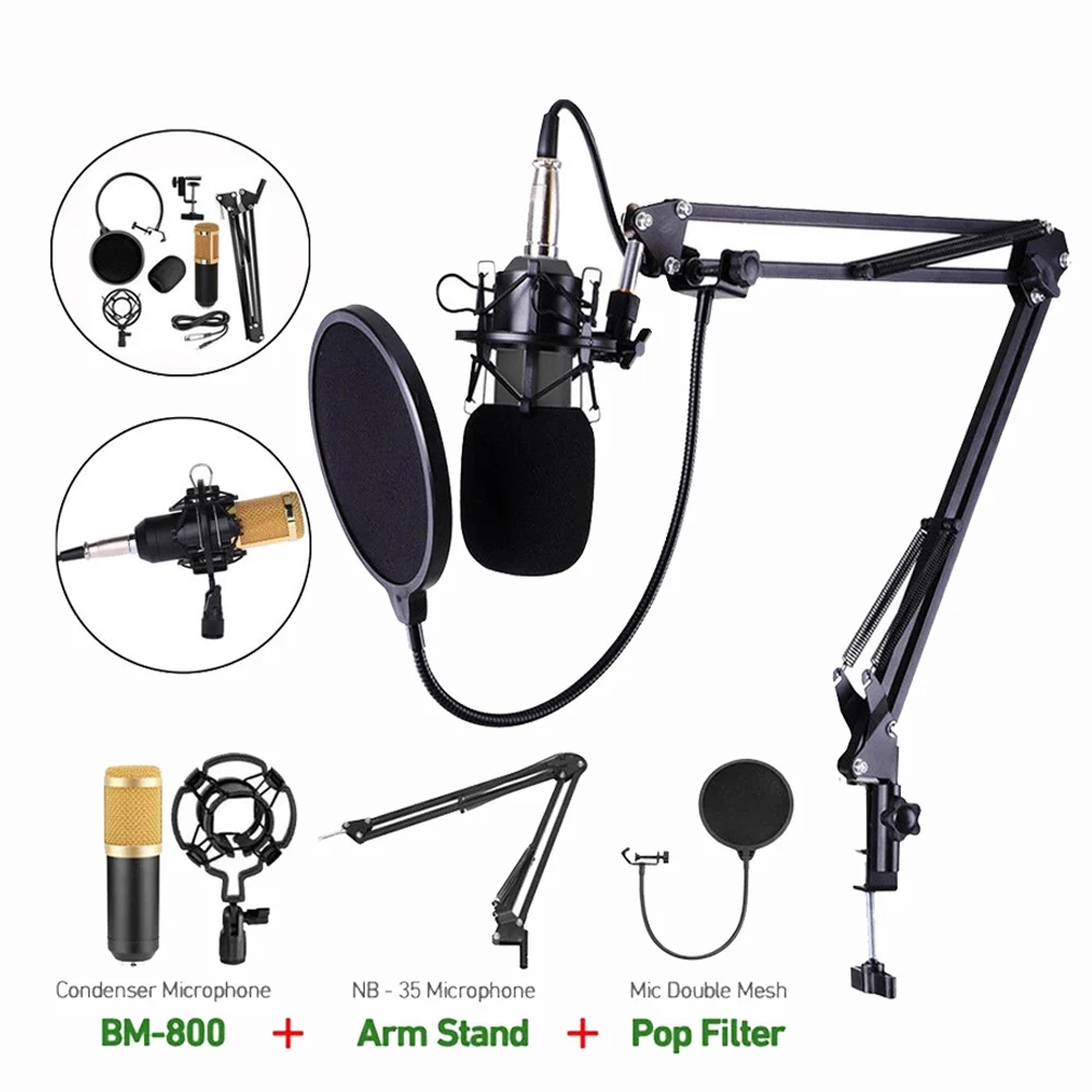 1. Профессиональный конденсаторный аудио 3,5 мм проводной Студийный микрофон BM 800 микрофон для записи вокала микрофон K TV караоке + стойка для микрофона. Идеально подходит для радиовещательной студии, звуковой студии с голосовым управлением, сцены, телевизионные станции и т. Д. Ножничный рычаг настольная микрофонная стойка и микрофонный стреловой фильтр И ударопрочное крепление