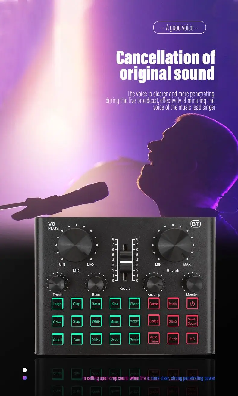 1 * конденсаторный микрофон (синий опционально)1 * шнур питания1 * Фильтр ветрового стекла1 * кронштейн для ножниц1 * Фильтр1 * ветрозащитный Поролоновый колпачок1 * противоударный пластиковый кронштейн1 * V8Plug звуковая карта1 * USB-кабель