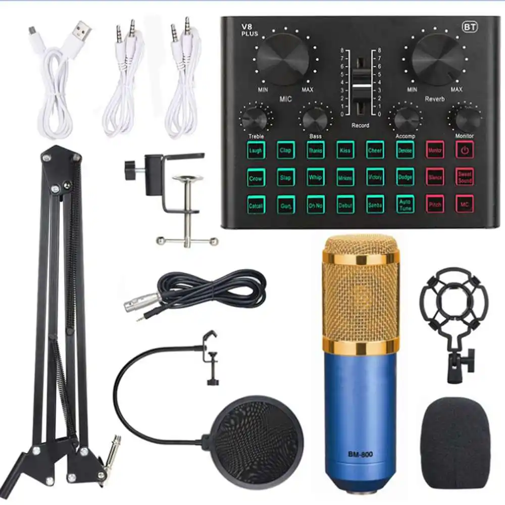 Микрофон со звуковой картой, совместимый с bluetooth BM-800, комплекты для студийной записи, конденсаторный аудио 3,5 мм, проводной Студийный микрофон, набор микрофона для записи вокала