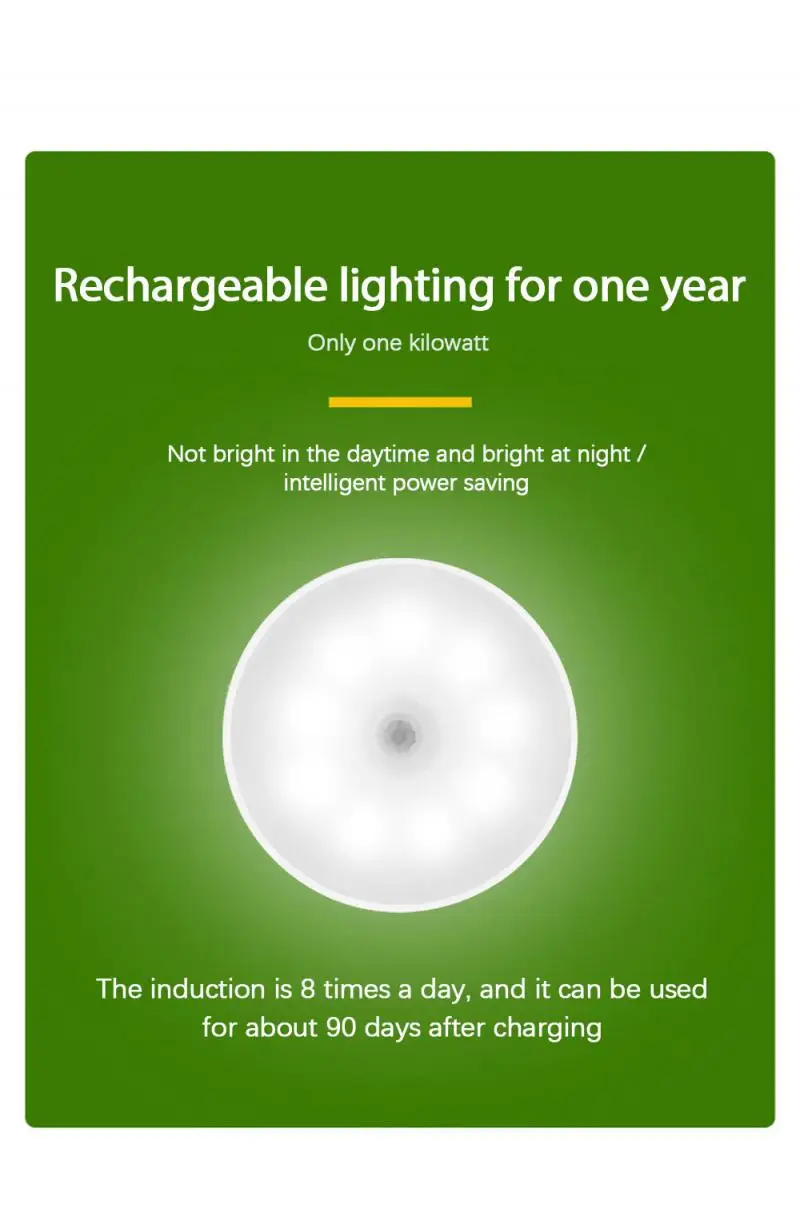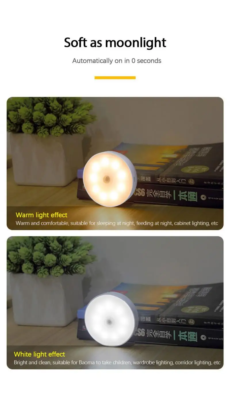 Магнитная Ночная лампа с 8 светодиодами, ночник с датчиком движения, перезаряжаемый ночной Светильник ильник, лампа для детей, гостиной, спальни, светильник щение ing
