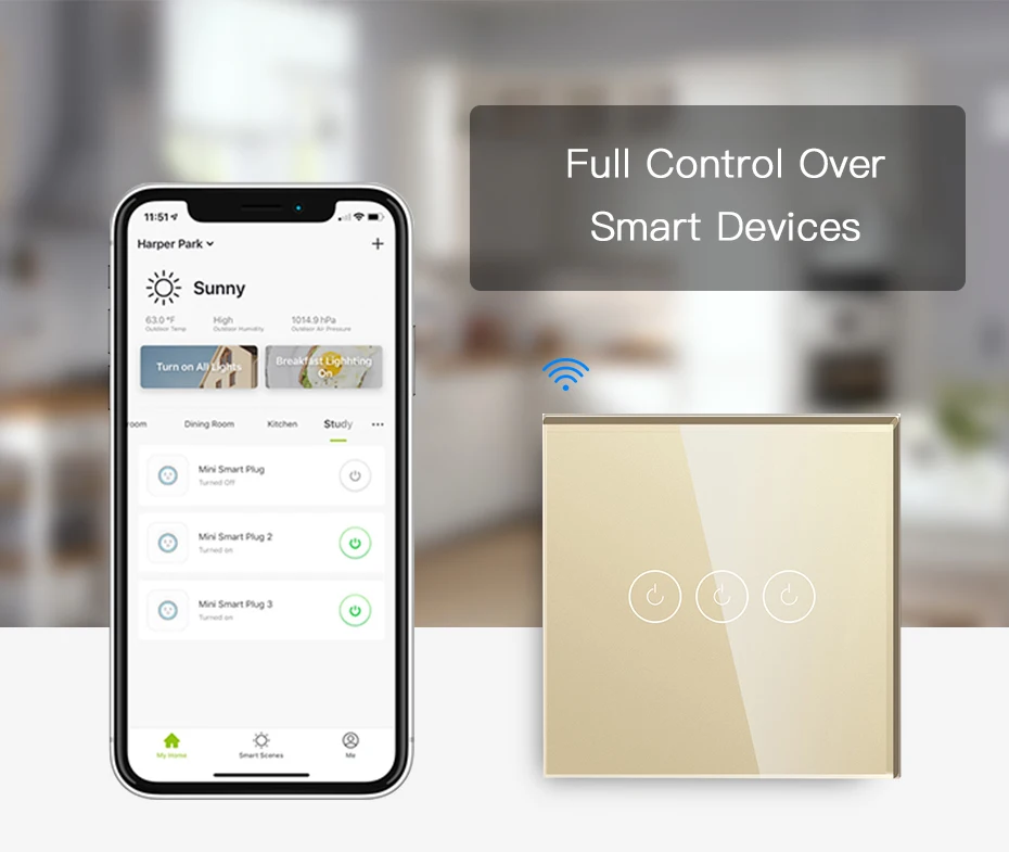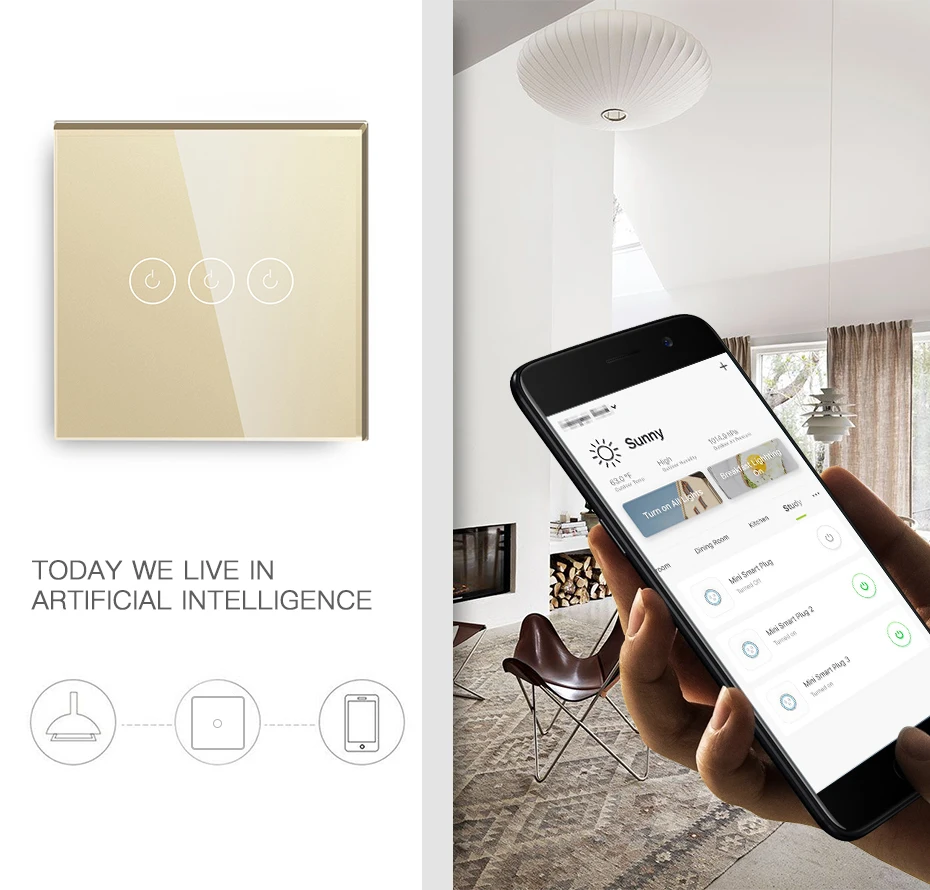 1.Мульти-контроль Ассоциации:WiFiПереключатели отличается от предыдущего на 1/2/3way и может управлять одним светильник отРазныеМеста.