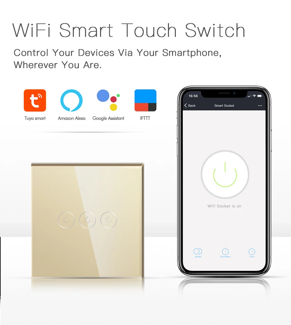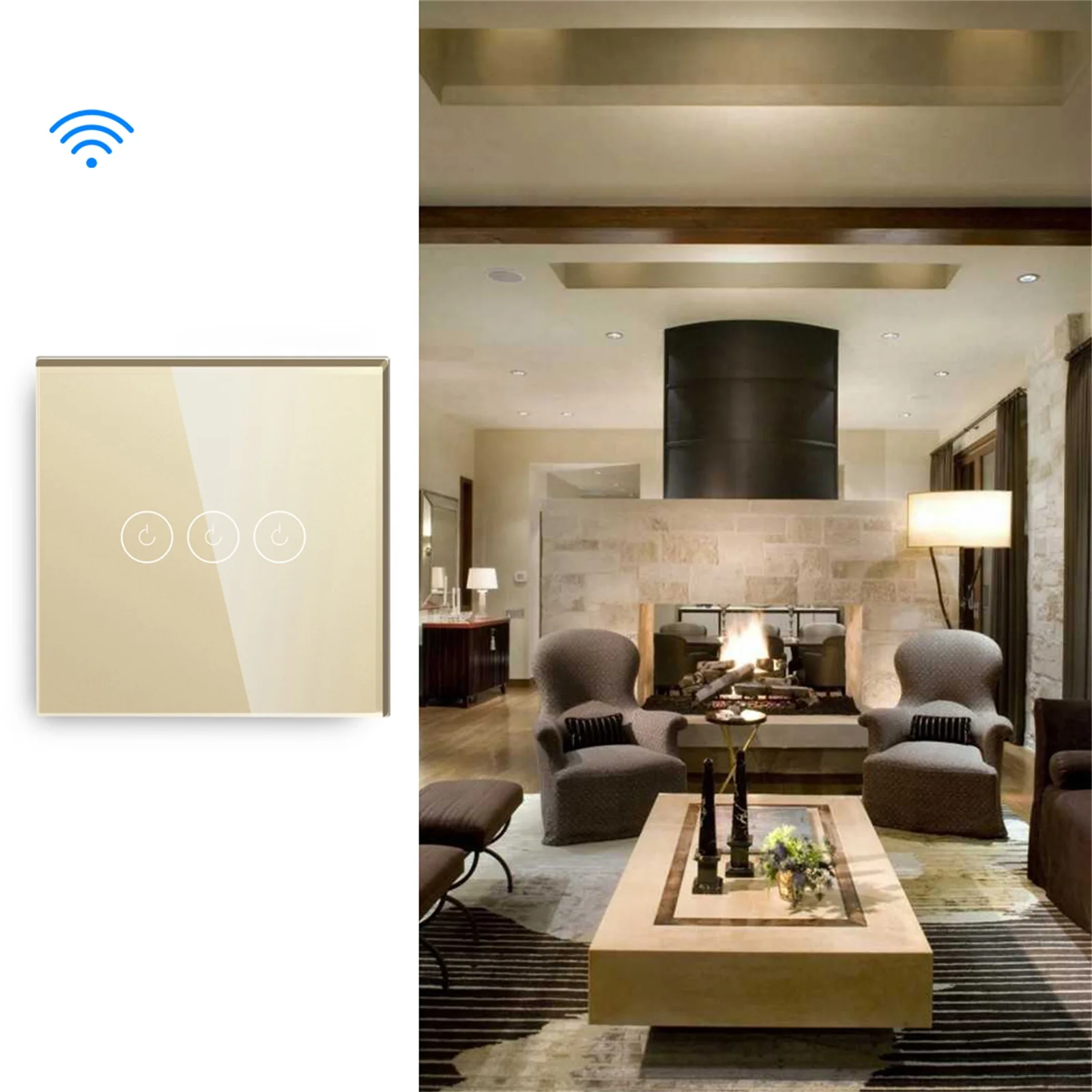 Сенсорный выключатель Bseed с поддержкой Wi-Fi, сенсорный переключатель с 3 клавишами, европейский стандарт, черного, белого, золотого, серого цветов, со стеклянной панелью, работает с Tuya Smart