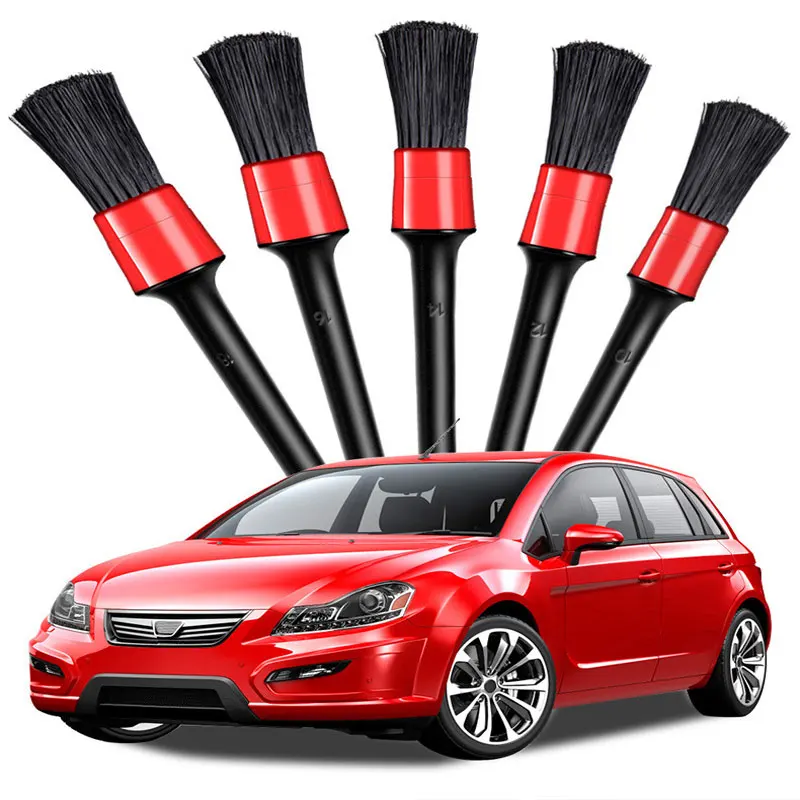 Особенность: 5 разных размеров кистей для удовлетворения ваших потребностей. Достаточная длина для легкого исследования и проникновения в гайку, узкое пространство. Нет металлических деталей, нет возможности повредить или поцарапать прецизионные колеса. Мягкая щетка, идеально подходит для использования на мягких кожаных сидениях или наружные знаки. Каждая кисть имеет отверстие для подвешивания ручки для удобной переноски. Многофункциональная щетка, Влажная и сухая. Может использоваться для удаления пыли, хлебных крошек и других мелких предметов с колес, вентиляционных отверстий, отделки, зазоров сидений и знаков, что делает ваш автомобиль полностью чистым изнутри. Спецификация: Цвет: черный + красный (как показано на фотографии) Материал:ПП клеевой провод Количество: 5 шт./компл. Посылка: 1 Набор из чистящие кисти инструменты