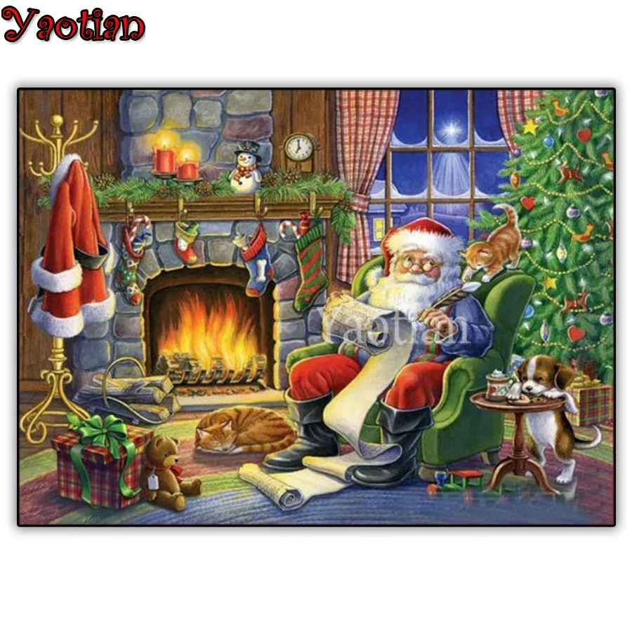 Алмазная картина «сделай сам», картины Санта-Клауса, алмазная вышивка, полная круглая мозаика, алмазная вышивка, котенок и щенок, домашний декор