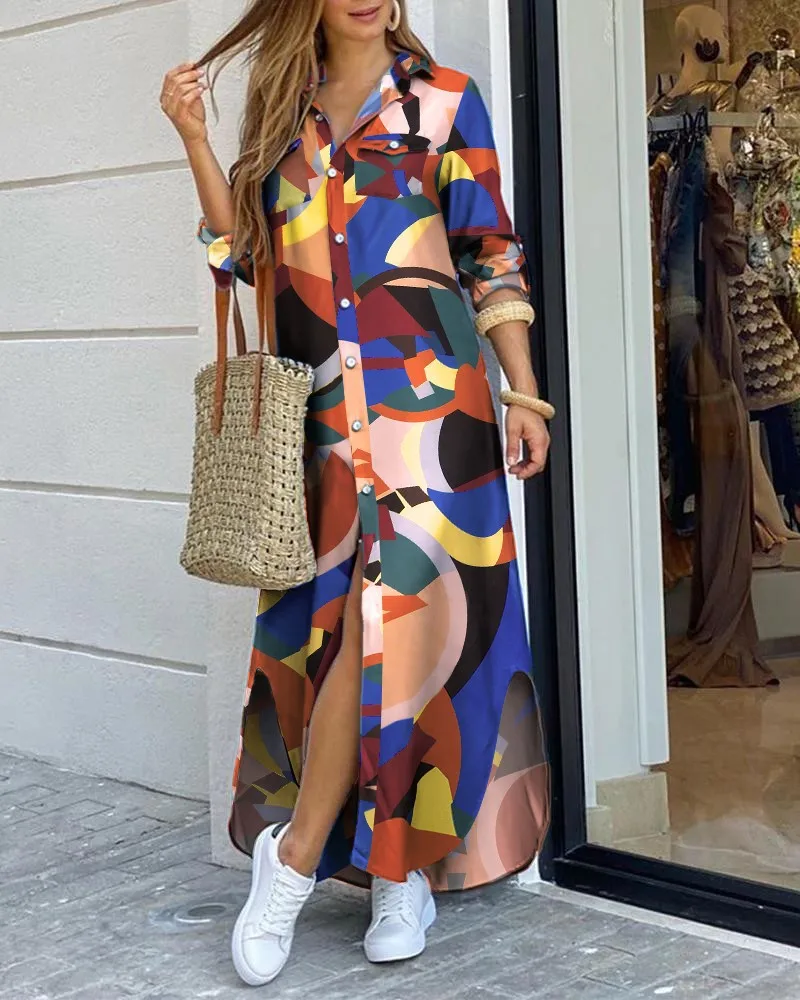 Женское Повседневное платье-рубашка, длинное уличное платье на пуго...