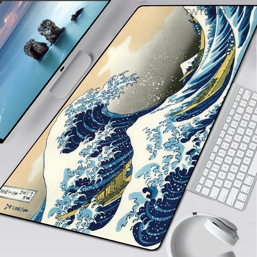 Коврик для мыши Great Wave Off, большой резиновый коврик для компьютерной мыши с рисунком оверлока по краям, скоростной игровой коврик для настольного ПК, водонепроницаемый коврик для клавиатуры, XXL