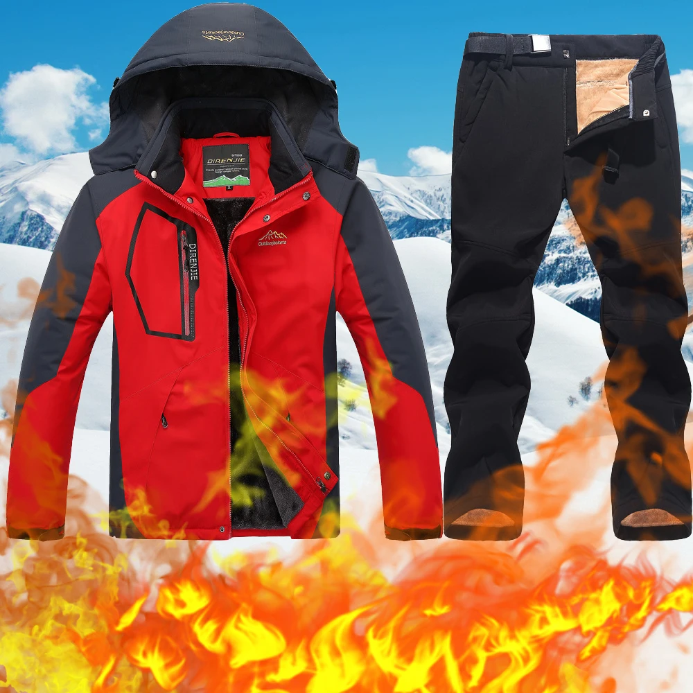 Зимний лыжный костюм для мужчин, теплый, ветрозащитный, водонепроницаемый, спортивный, для улицы, куртка и штаны, мужской лыжный костюм, куртка для сноуборда, 2021