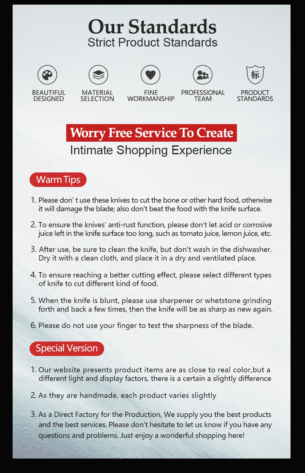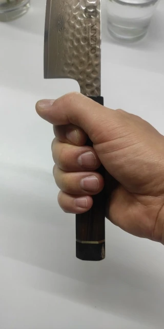 Доставка быстрая. Упаковка как на подарок. Острые. Немного не обычная для меня форма. Ручка удлиненная для лучшего баланса. При попытке перерубить куриную кость, немного загнул режущую кромку. Теперь сомневаюсь в достаточной твердости. Посмотрим через сколько затупится.