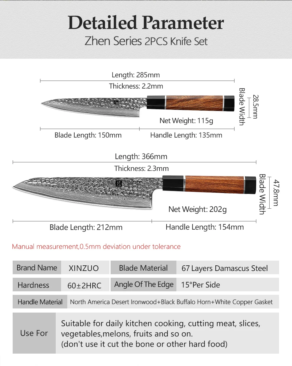 Набор ножей из дамасской стали XINZUO Zhen Series 2 шт.