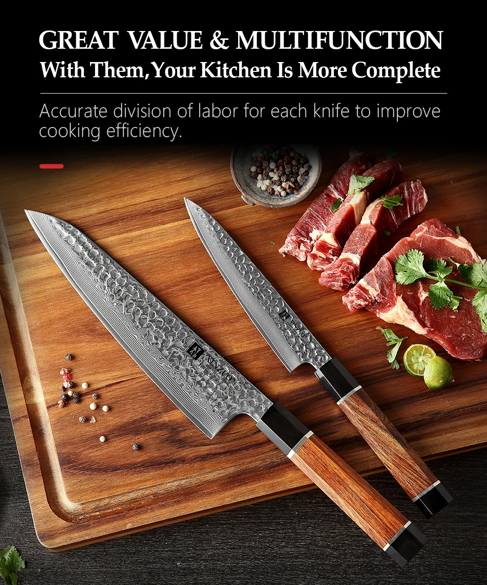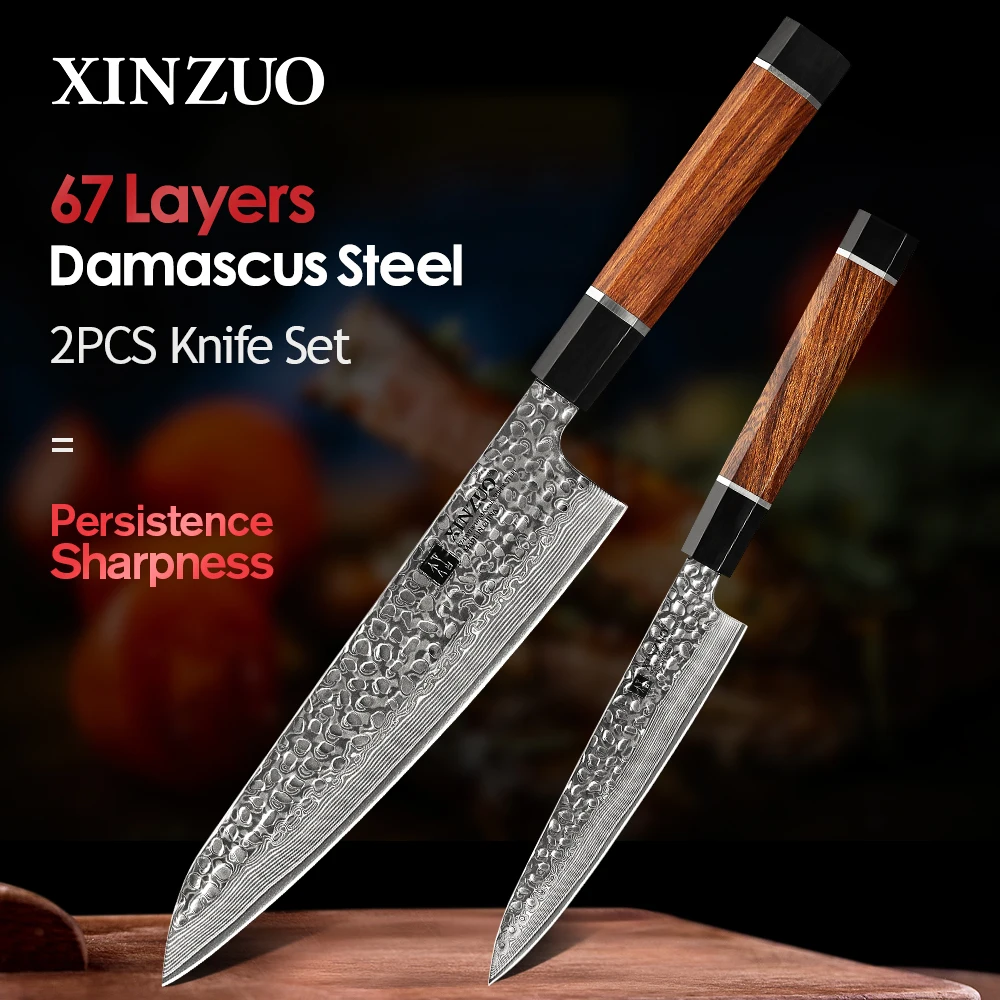 Набор кухонных ножей XINZUO VG10, дамасская сталь, 2 шт., универсальные ножи шеф-повара, резак для пустыни, железная древесина, ручка