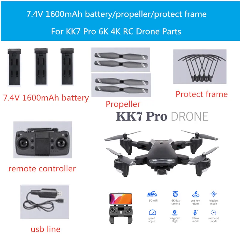 Аккумуляторпропеллерзарядное устройство 7,4 В 1600 мА ч для KK7 Pro 6K 4K WIFI FPV RC дрона запасные части KK7 аксессуары KK7 PRO