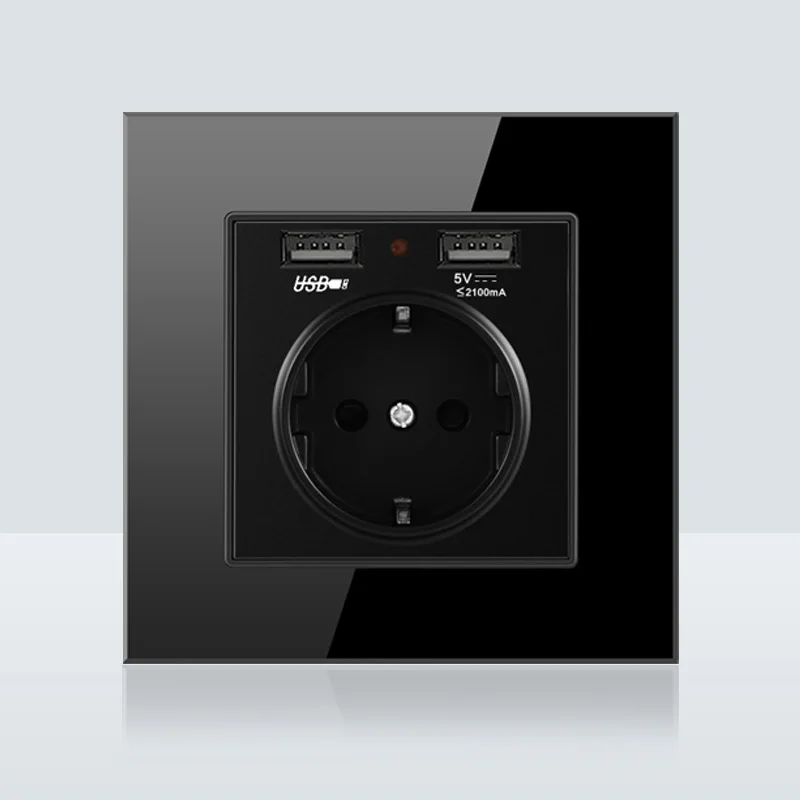 2А Двойной USB порт настенное зарядное устройство адаптер питания зарядка розетка с USB настенный адаптер ЕС розетка Pow белая стеклянная панель