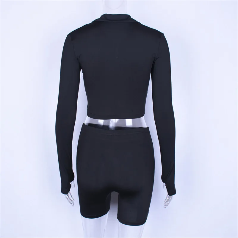Модный комплект из двух предметов, топ и штаны, Женский комплект из двух предметов, женский спортивный костюм, Клубные наряды, однотонный набор застежек на молнии с длинными рукавами