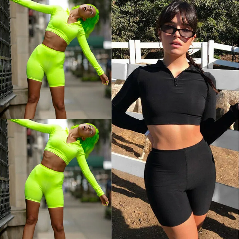 Женский эластичный топ и шорты, повседневный спортивный костюм из 2...