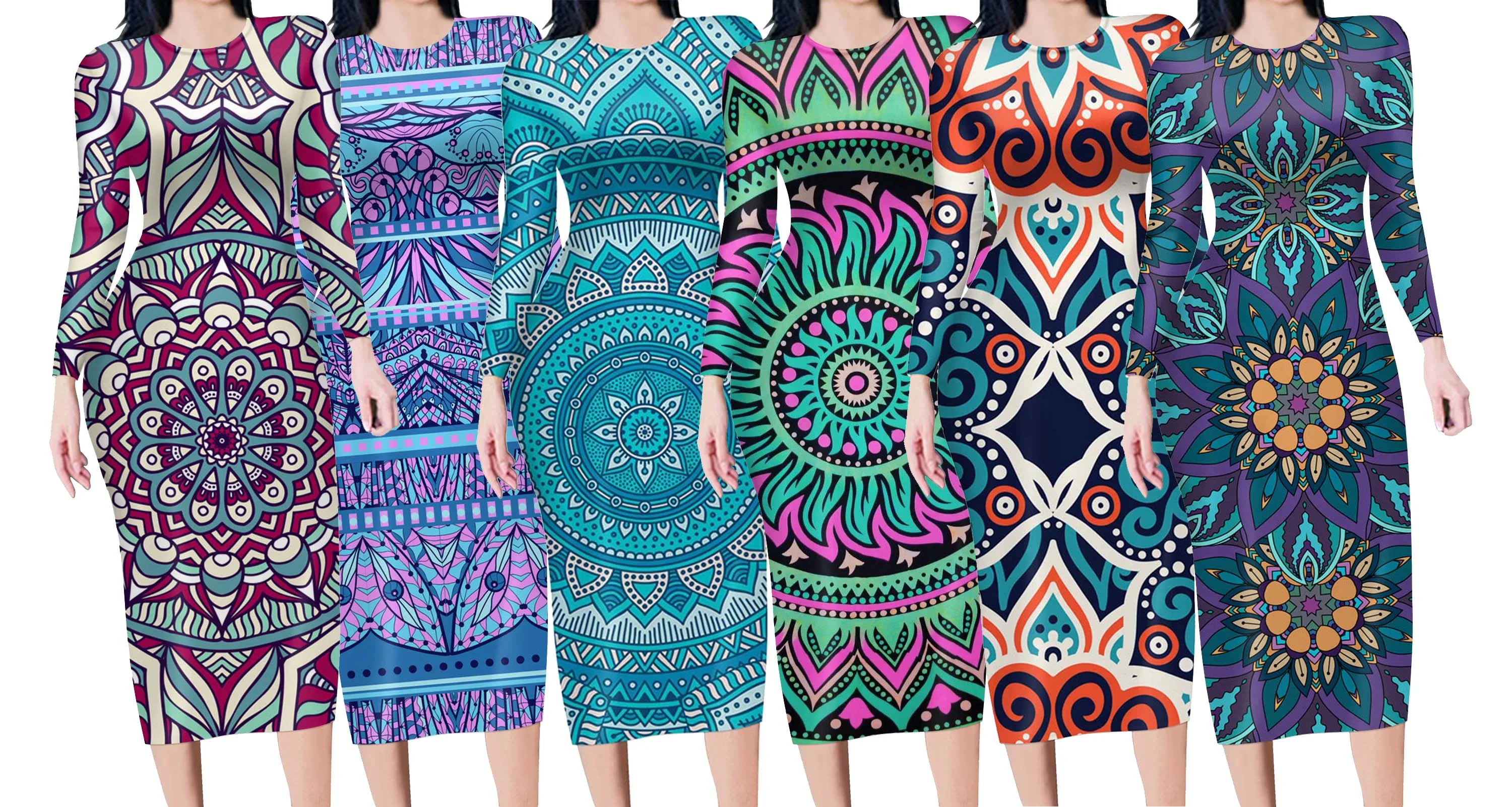 HYCOOL полинезийская Мандала дизайн модное женское зимнее весеннее платье с длинным рукавом Повседневная Вечерние няя Офисная Женская одежда Новинка