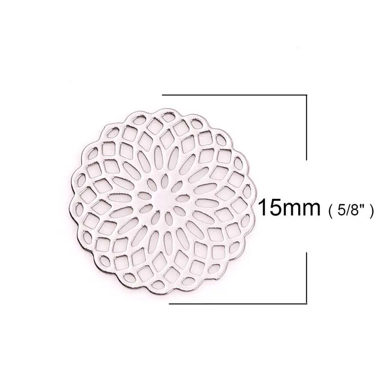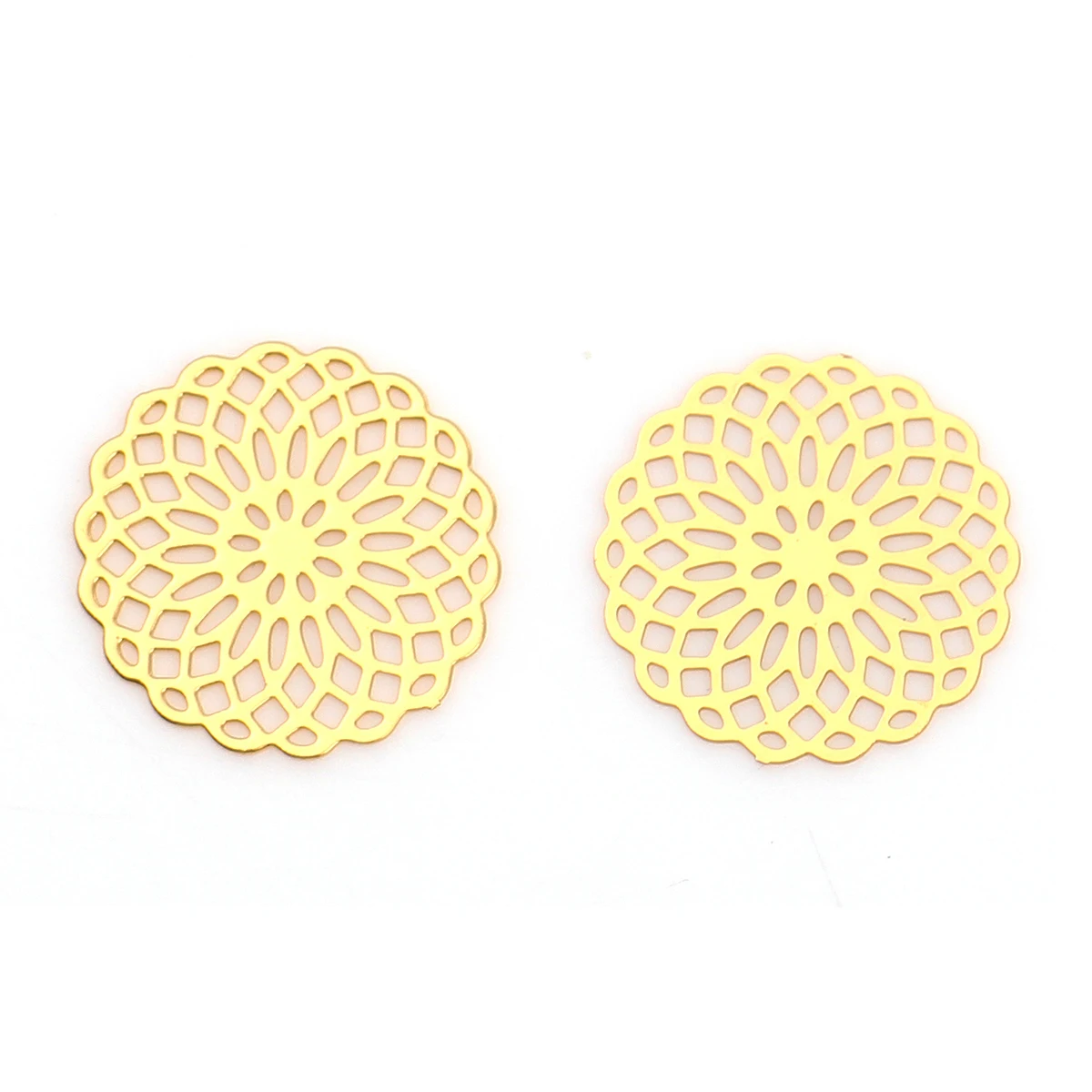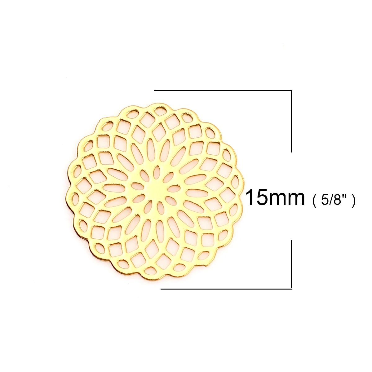 Круглые полые медные украшения в виде цветка, 10 шт., золотой цвет для изготовления ювелирных изделий своими руками, 15 мм (58 дюйма) x 15 мм (58 дюйма)