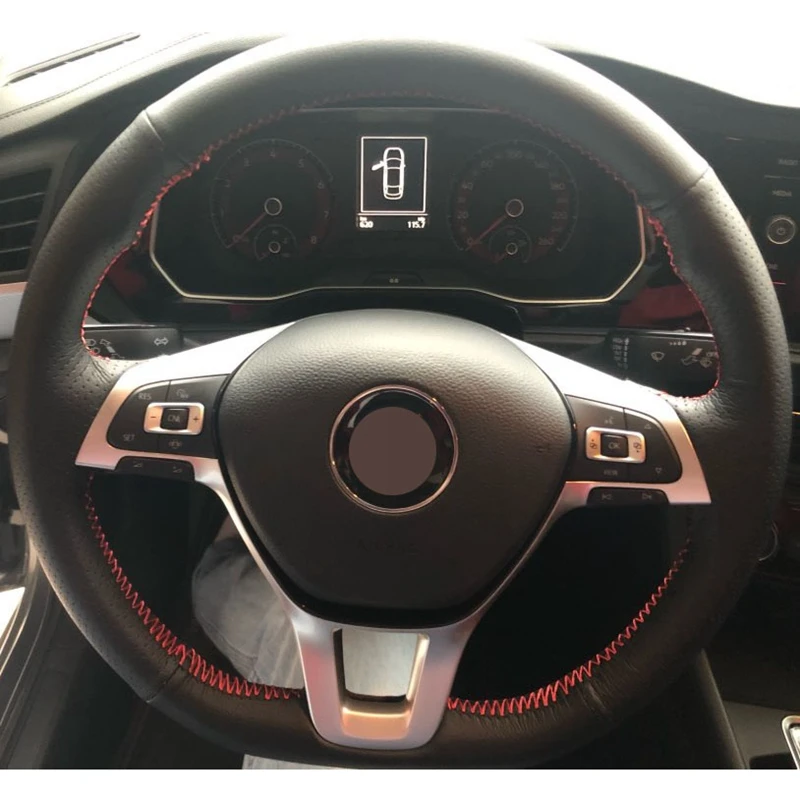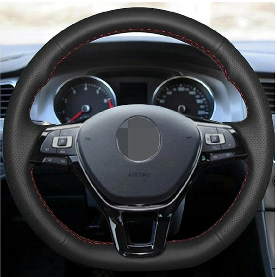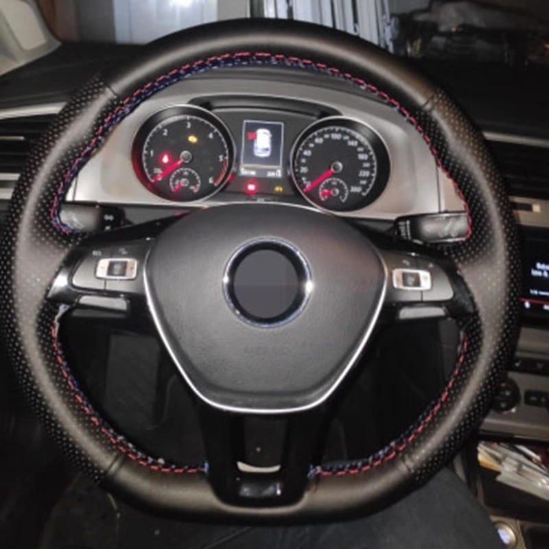 Чехол на руль из искусственной кожи, черный чехол рулевого колеса автомобиля для Volkswagen VW Golf 7 Mk7 New Polo Jetta Passat B8