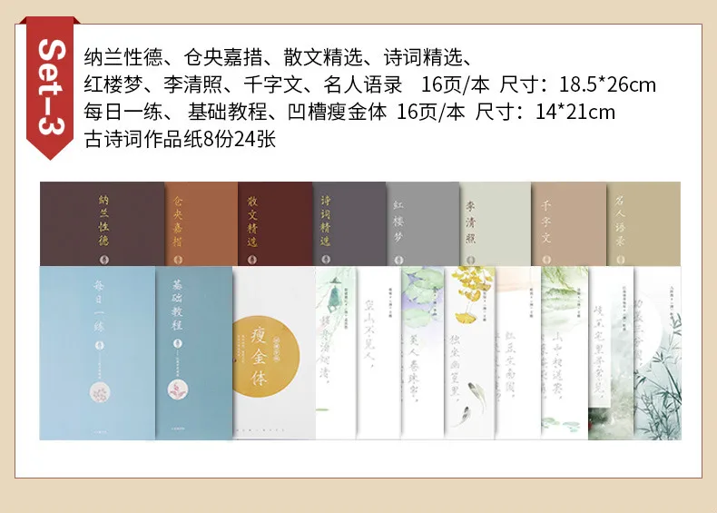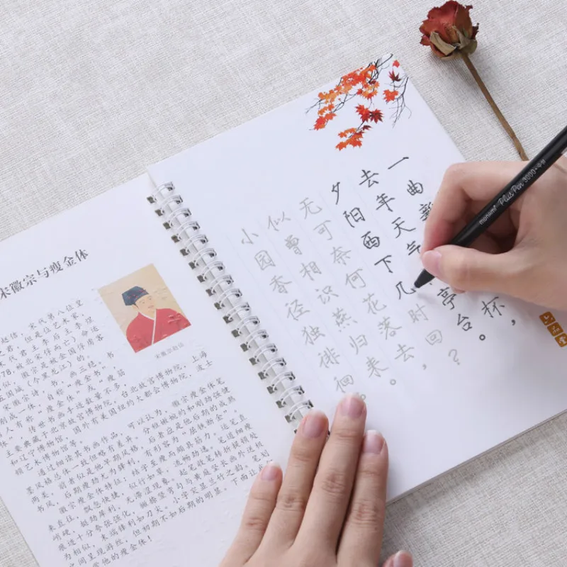 Тан стихотворение Song Ci копирайтер тонкий золотой скрипт каллиграфия Трассировка Спелые цветы рисовая бумага мягкая кисть Ручка тетрадь для практики