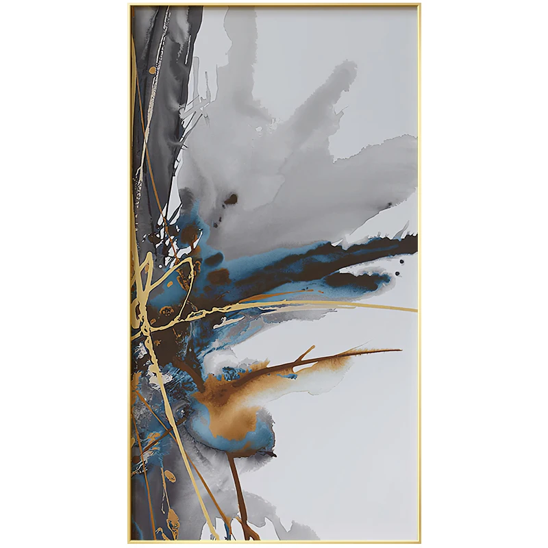 Абстрактный синий белый пейзаж Холст Плакаты печать золотые настенн...